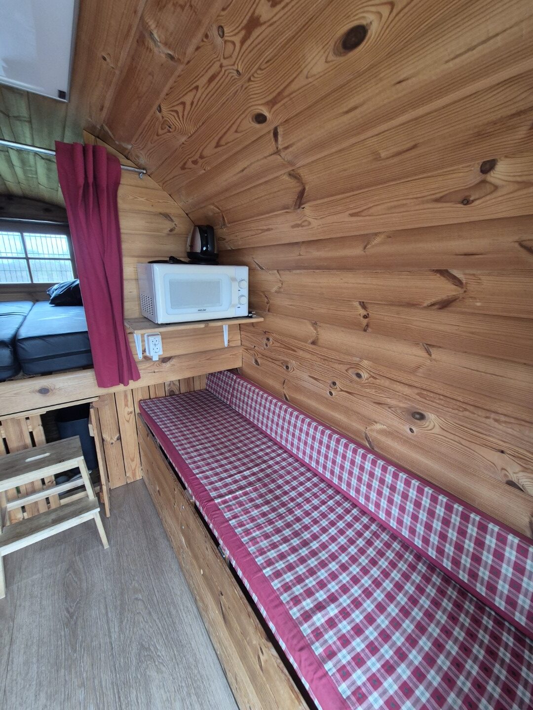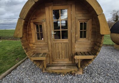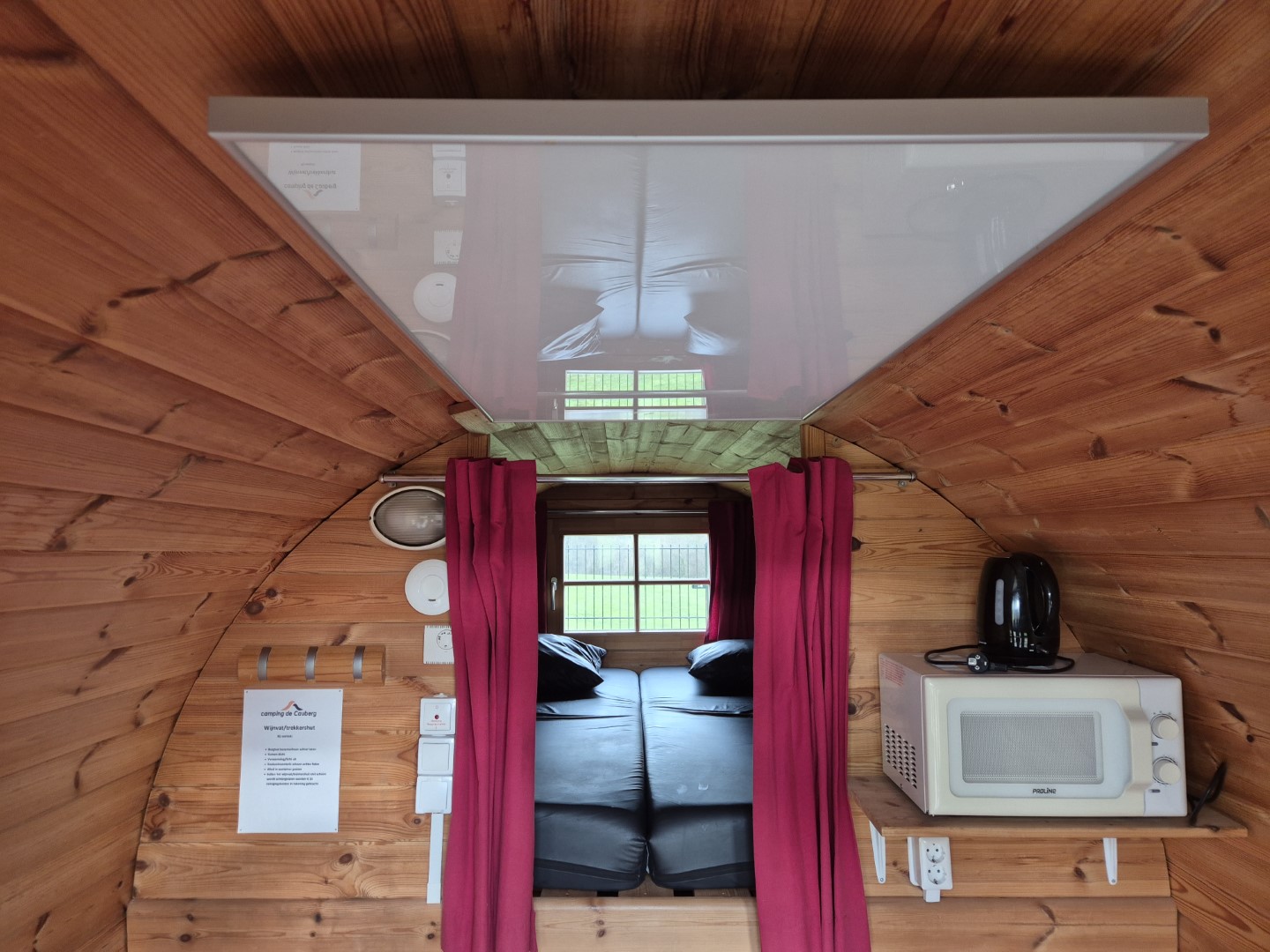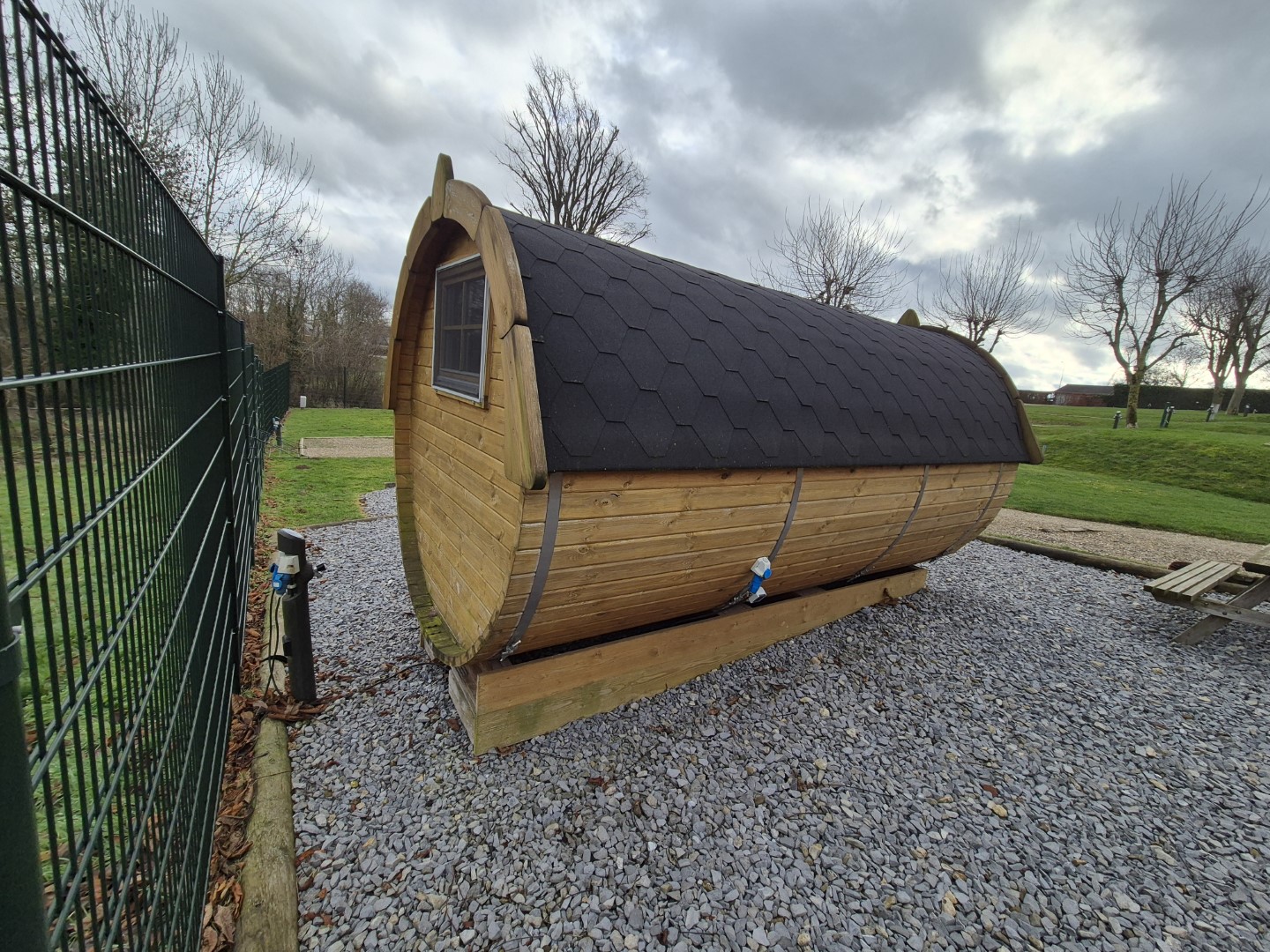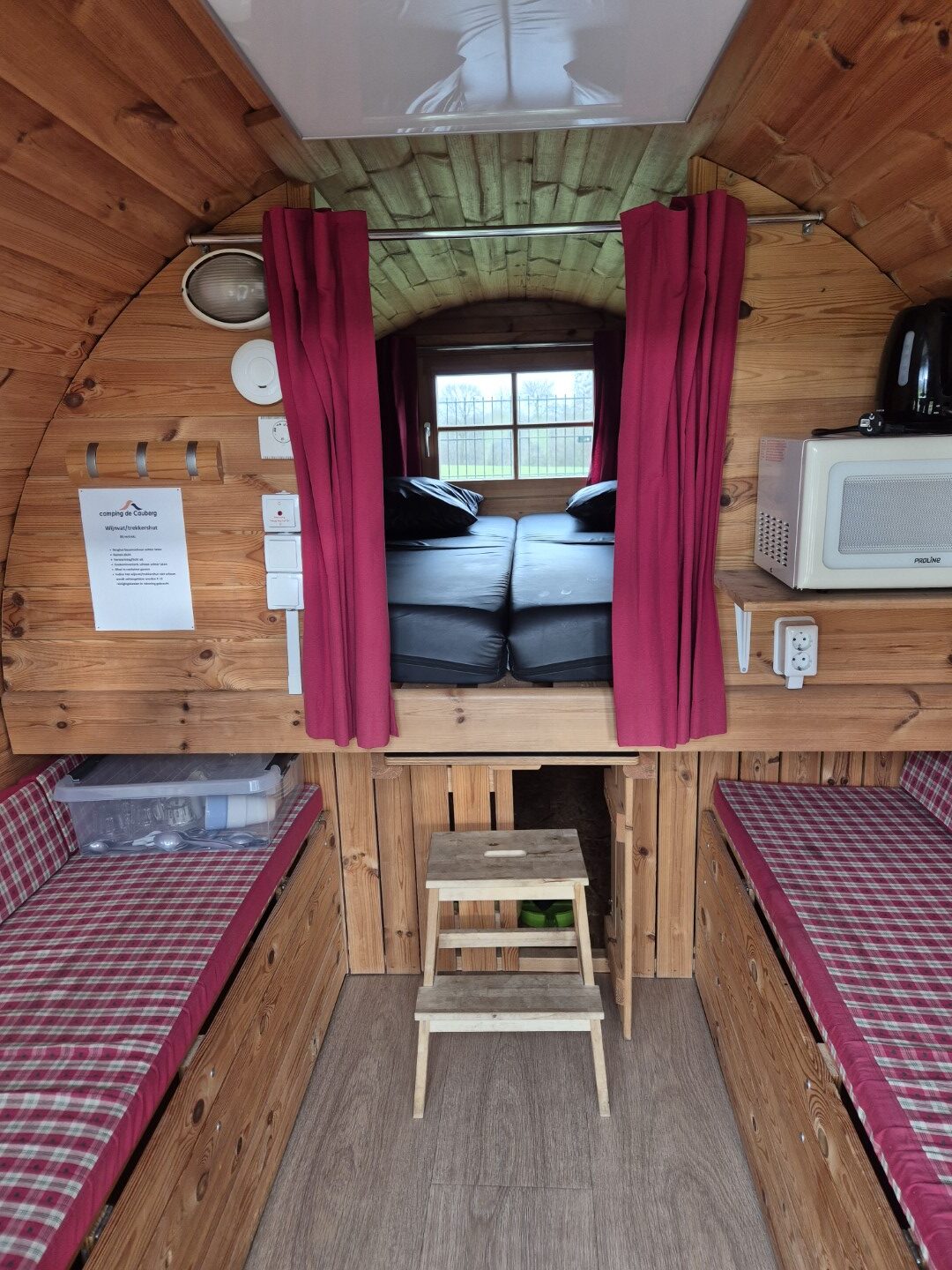 Een gebruikte set van 2 originele Finkota slaapton/ slaapvat geheel ingericht voor 2- 4 personen. Tonnetjes zijn alleen per 2 te koop. Ingang voorzijde met stevige deur en isolatie glas ramen, voorzien van een basis inrichting van slaapbank kussens tot matras en magnetron (wordt geleverd zoals afgebeeld). Verder voorzien van een infrarood verwarming paneel en natuurlijk is de slaapton voorzien van elektra aansluitingen. Prijs is af locatie in Limburg .
