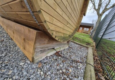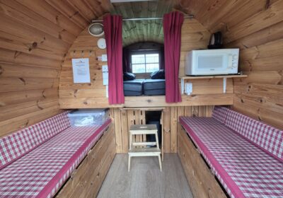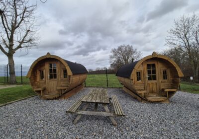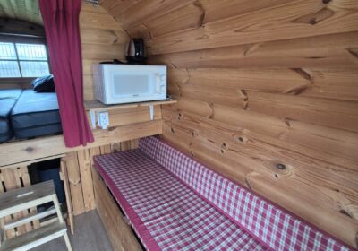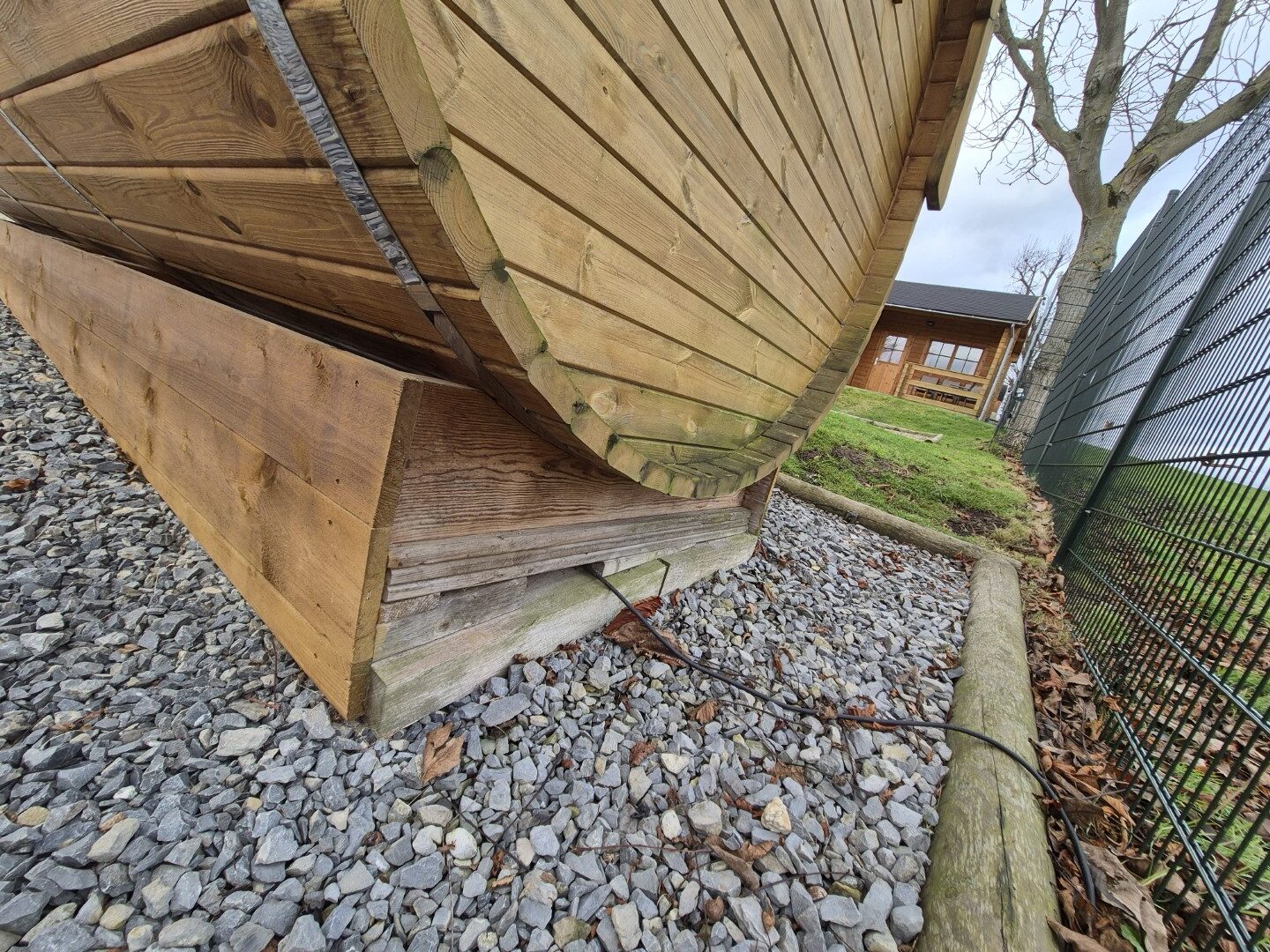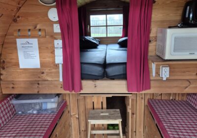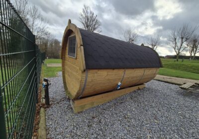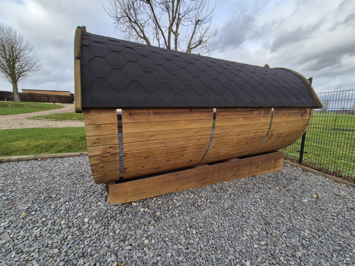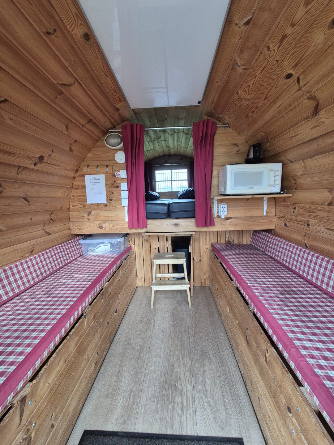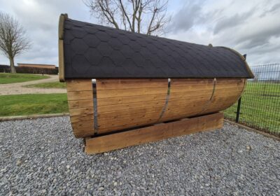 Een gebruikte set van 2 originele Finkota slaapton/ slaapvat geheel ingericht voor 2- 4 personen. Tonnetjes zijn alleen per 2 te koop. Ingang voorzijde met stevige deur en isolatie glas ramen, voorzien van een basis inrichting van slaapbank kussens tot matras en magnetron (wordt geleverd zoals afgebeeld). Verder voorzien van een infrarood verwarming paneel en natuurlijk is de slaapton voorzien van elektra aansluitingen. Prijs is af locatie in Limburg .
