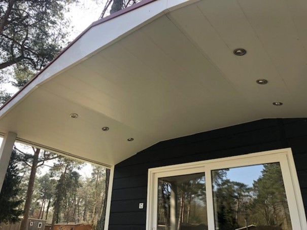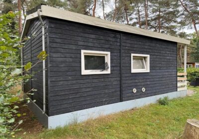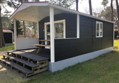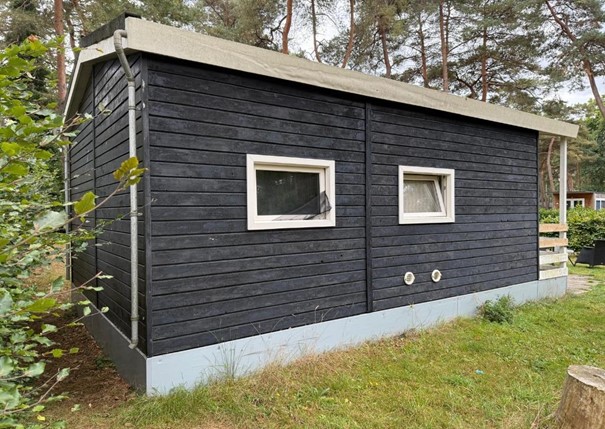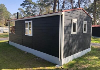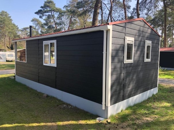 Een gebruikte serie van 4 stuks Chalets Maat Lodge M 4 pers. 35 m2