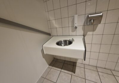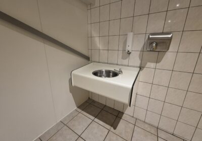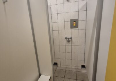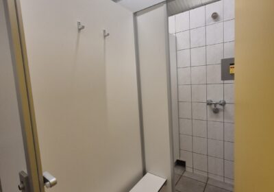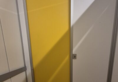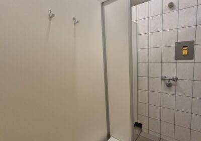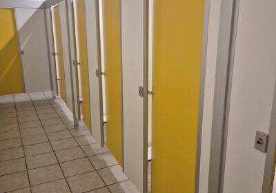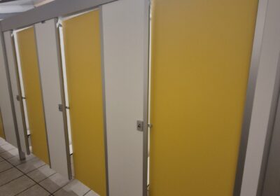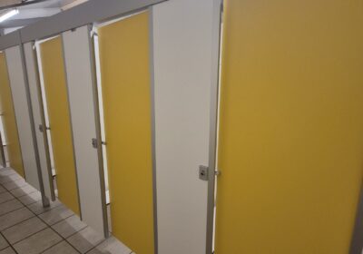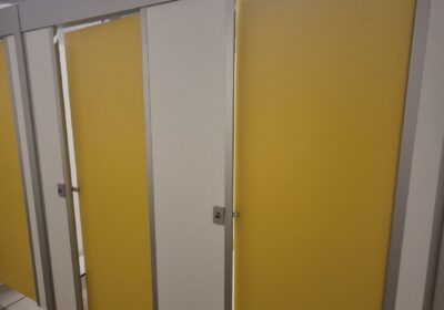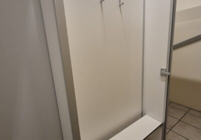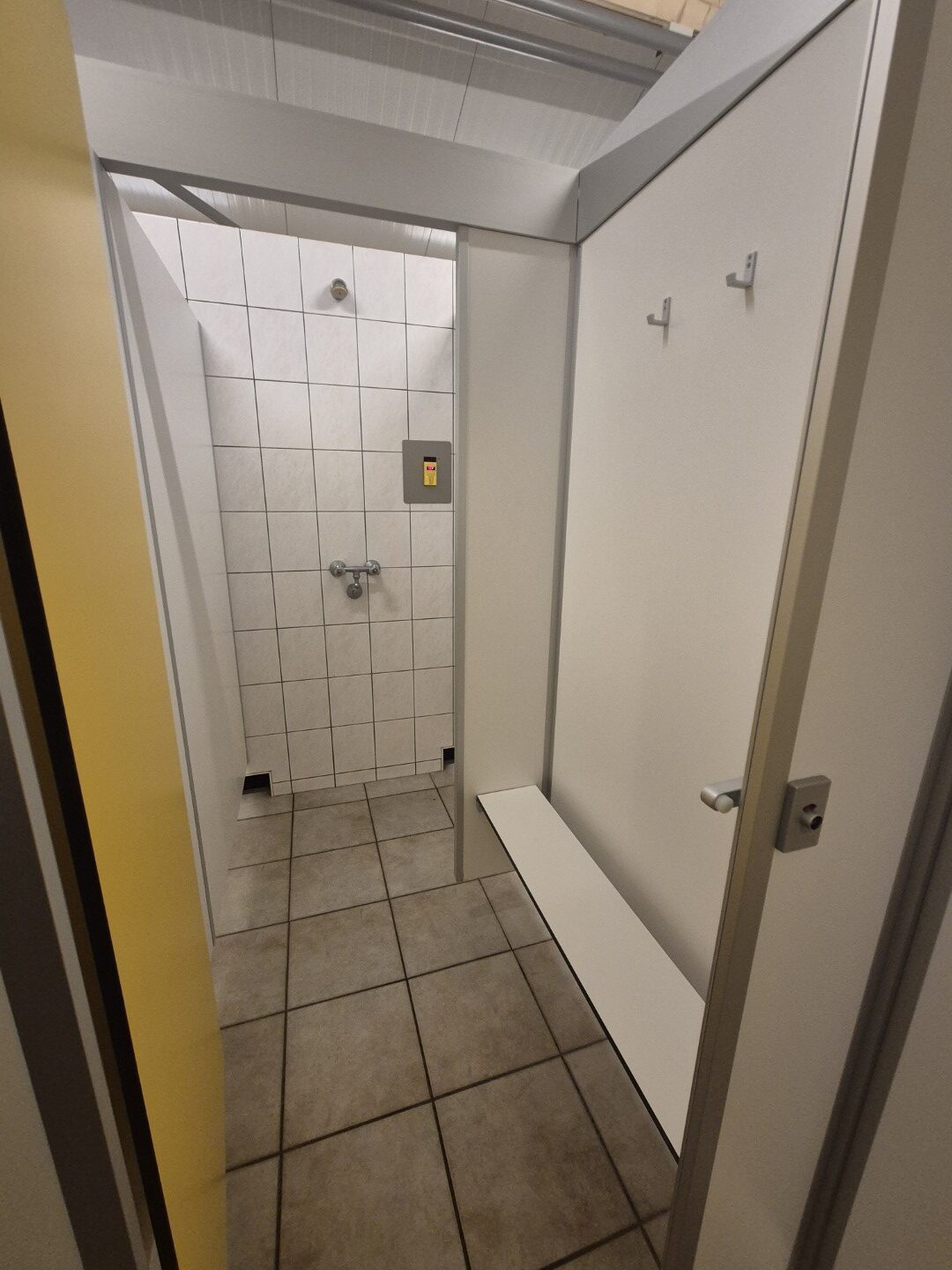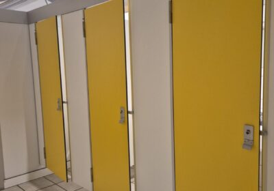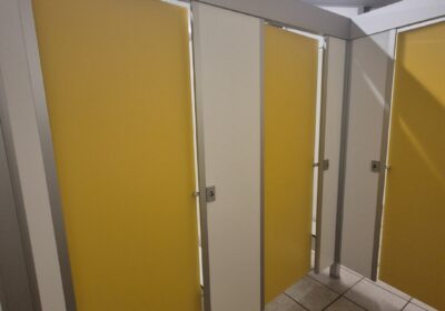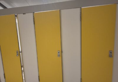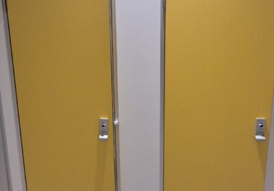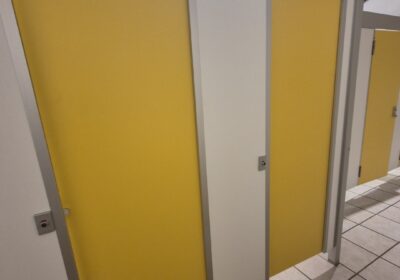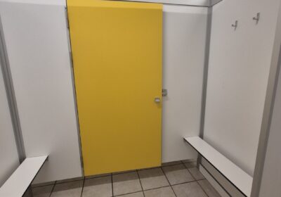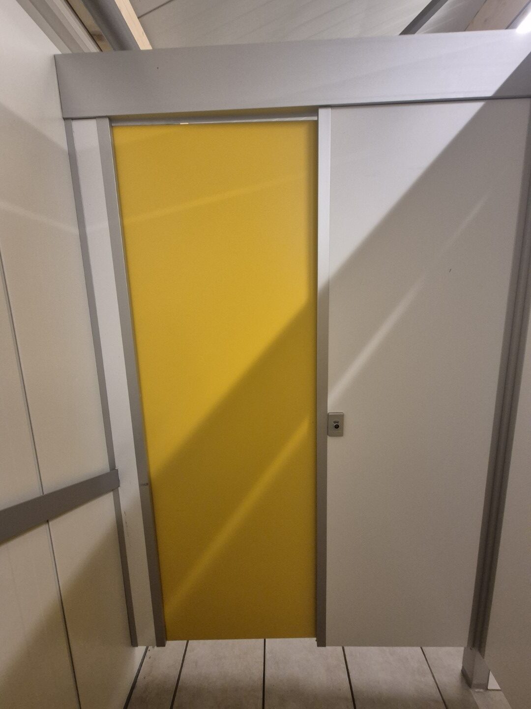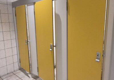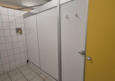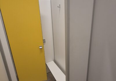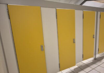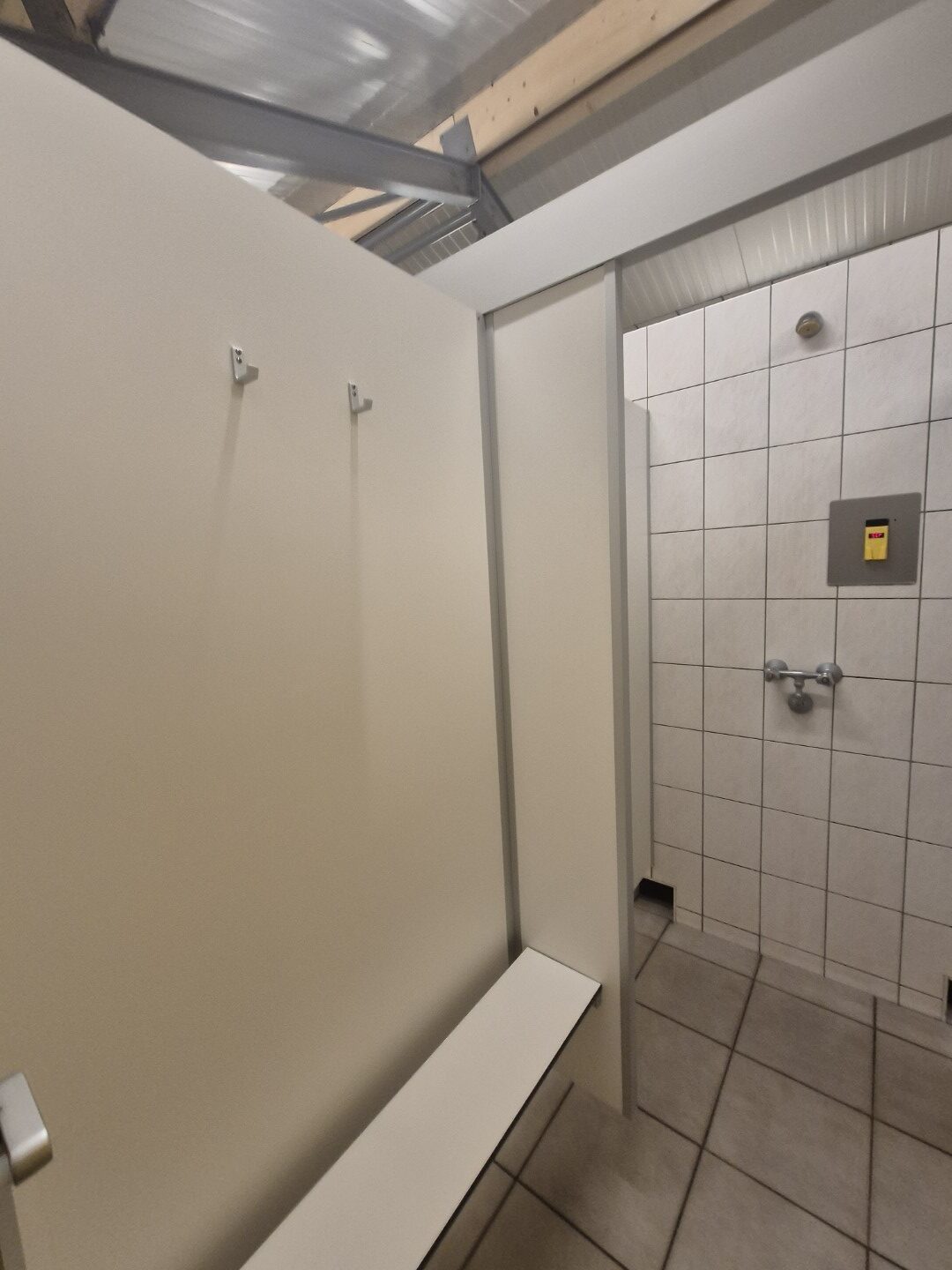 Partij is geheel van topkwaliteit trespa/Hpl (volkern deuren en tussenwanden) met RvS en aluminium hang en sluitwerk.