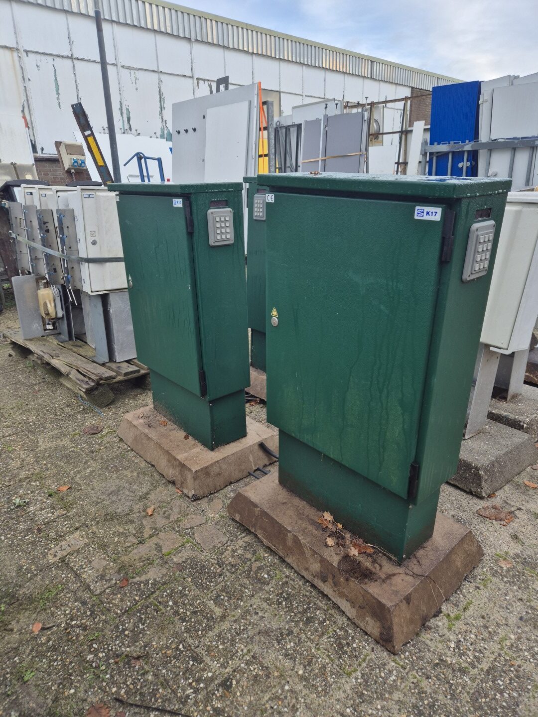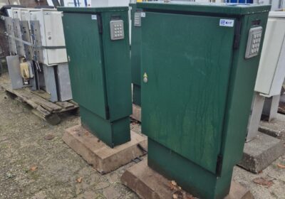 3 fraaie buiten elektra kasten in zeer sterk plaatstaal uitvoering op beton sokkel. Kasten zijn afsluitbaar en ook verder nog uit te breiden er is veel ruimte in de kasten.