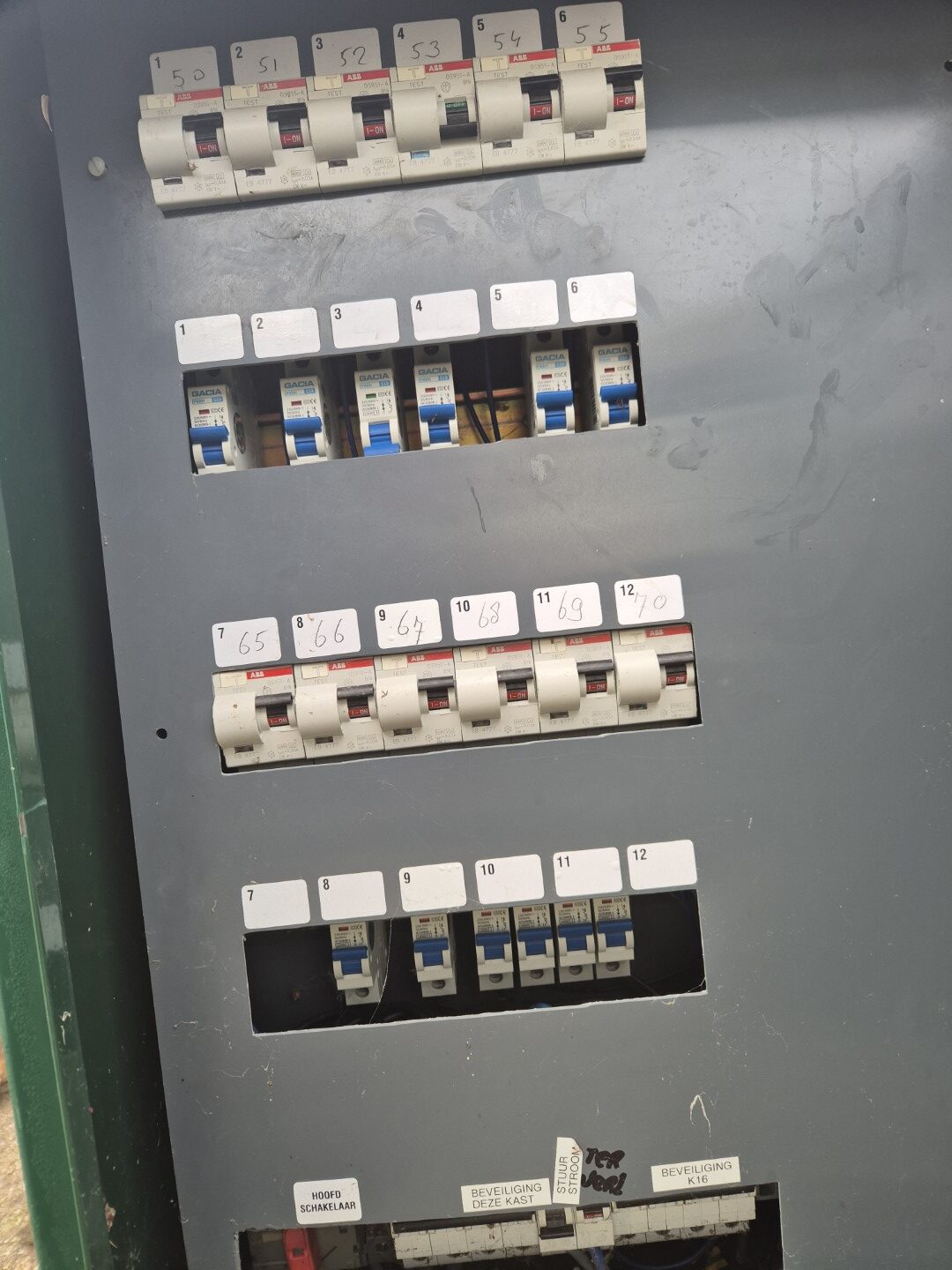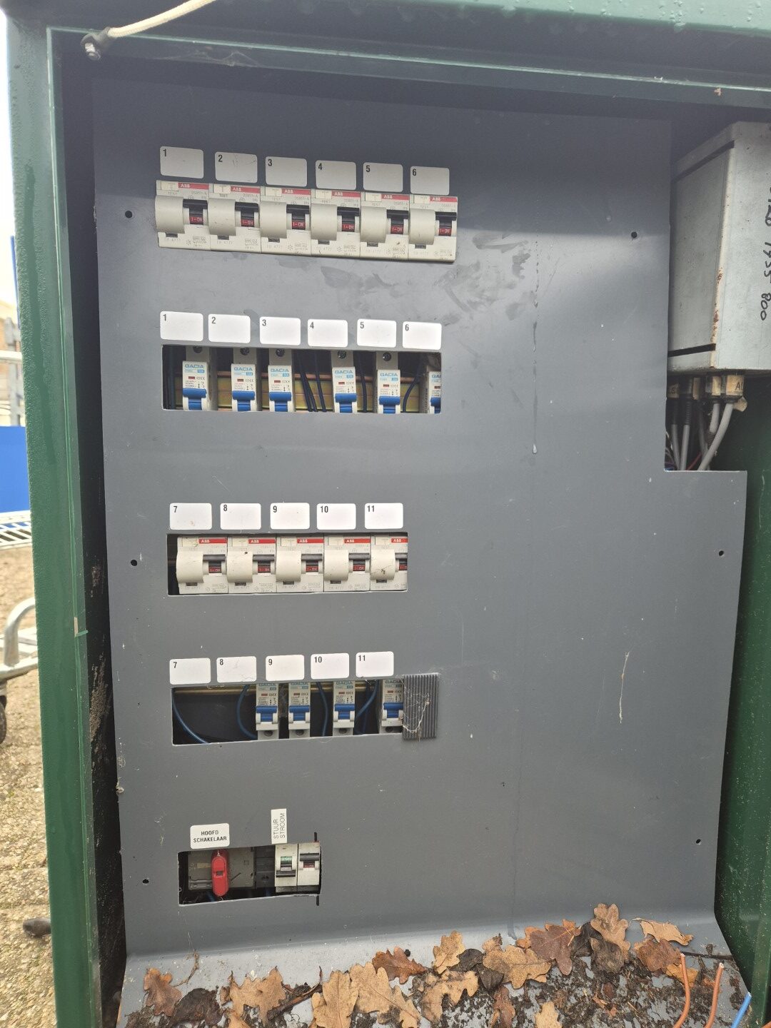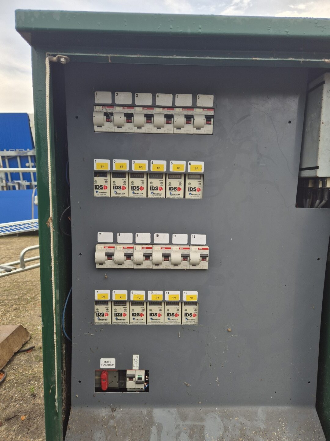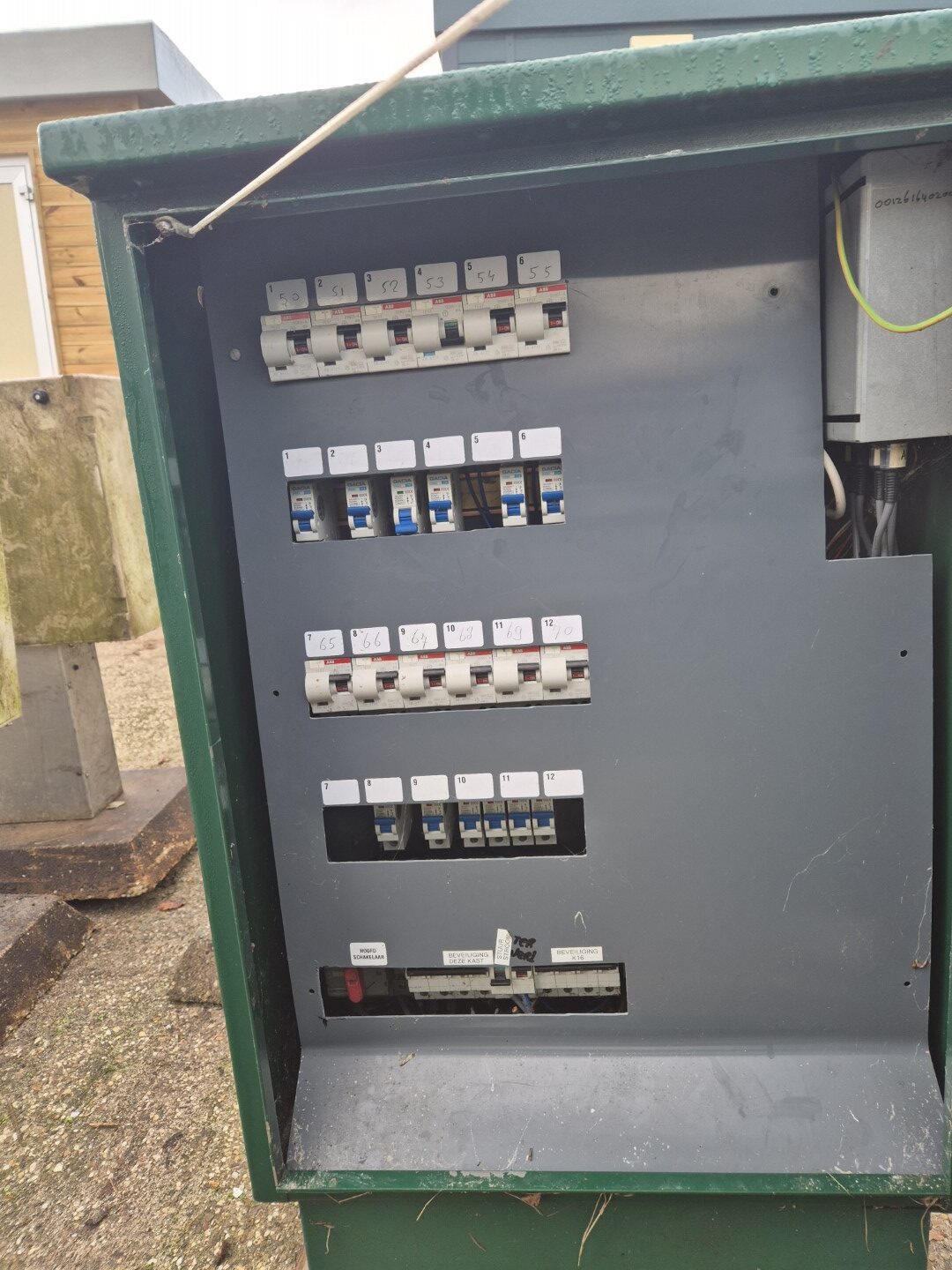 Kast 2 =  11 x 16 Ampère alamats (zekering en aardlek schakelaar ineen + 10 x C10 zekering +  11 x  goedgekeurde KWh meters en 3 fase hoofdschakelaar    € 695,-