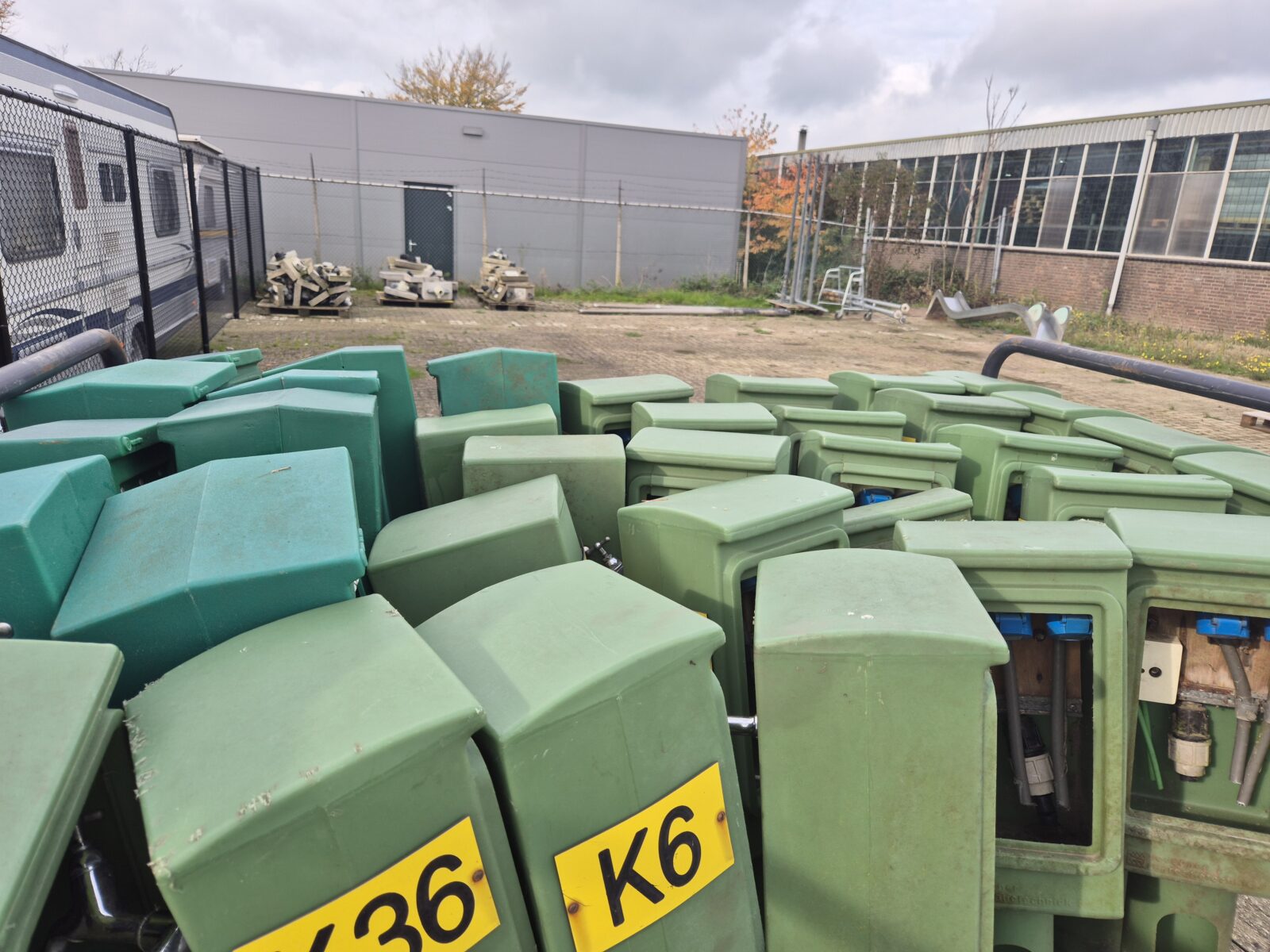 Een grote serie gebruikte aansluitpalen voor elektra of eventueel met water en cai . Makkelijke plaatsing met doorvoer van de kabel voor het aansluiten van 1 of 2 euro stekkers voor het voorzien van een stroom aansluiting. De aansluiting is dan gelijk droog en zit de aansluitstekker droog in de paal. Er kan naar wens ook een afvoer put of enkele/dubbel kraan ( aansluiting al voorbereid) bij worden geleverd voor een complete service paal. Leverbaar in licht en donker groen
