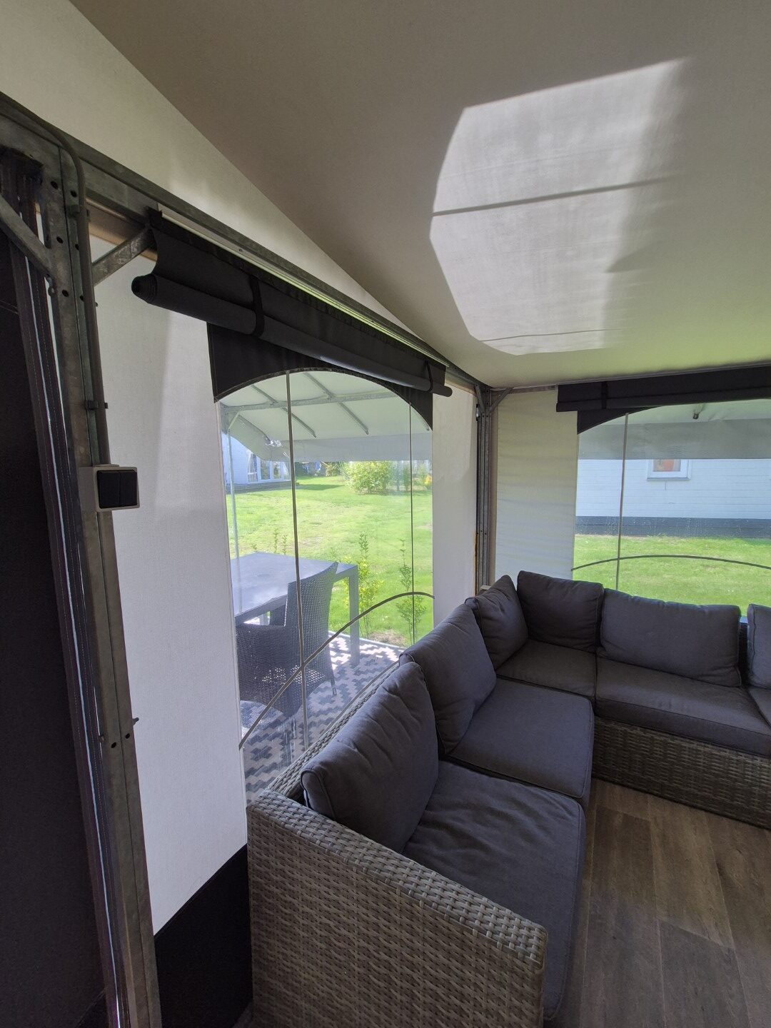 Dak half rond, gemaakt van PVC/Polyester, individueel demontabel, met excentrisch spansysteem.
