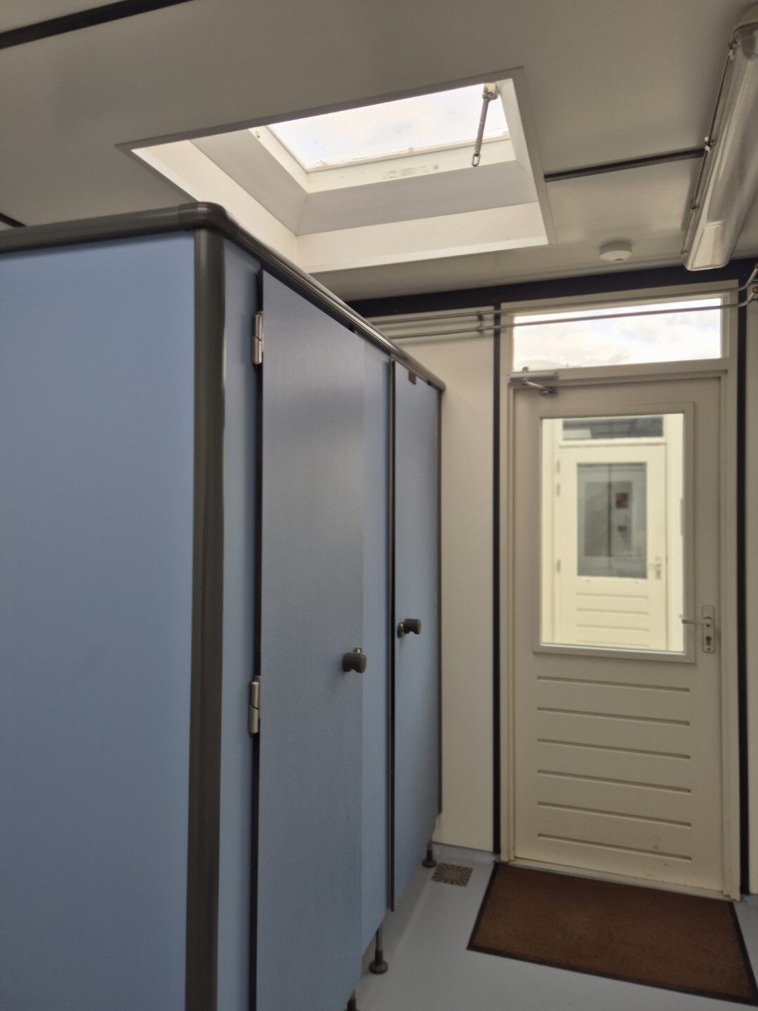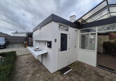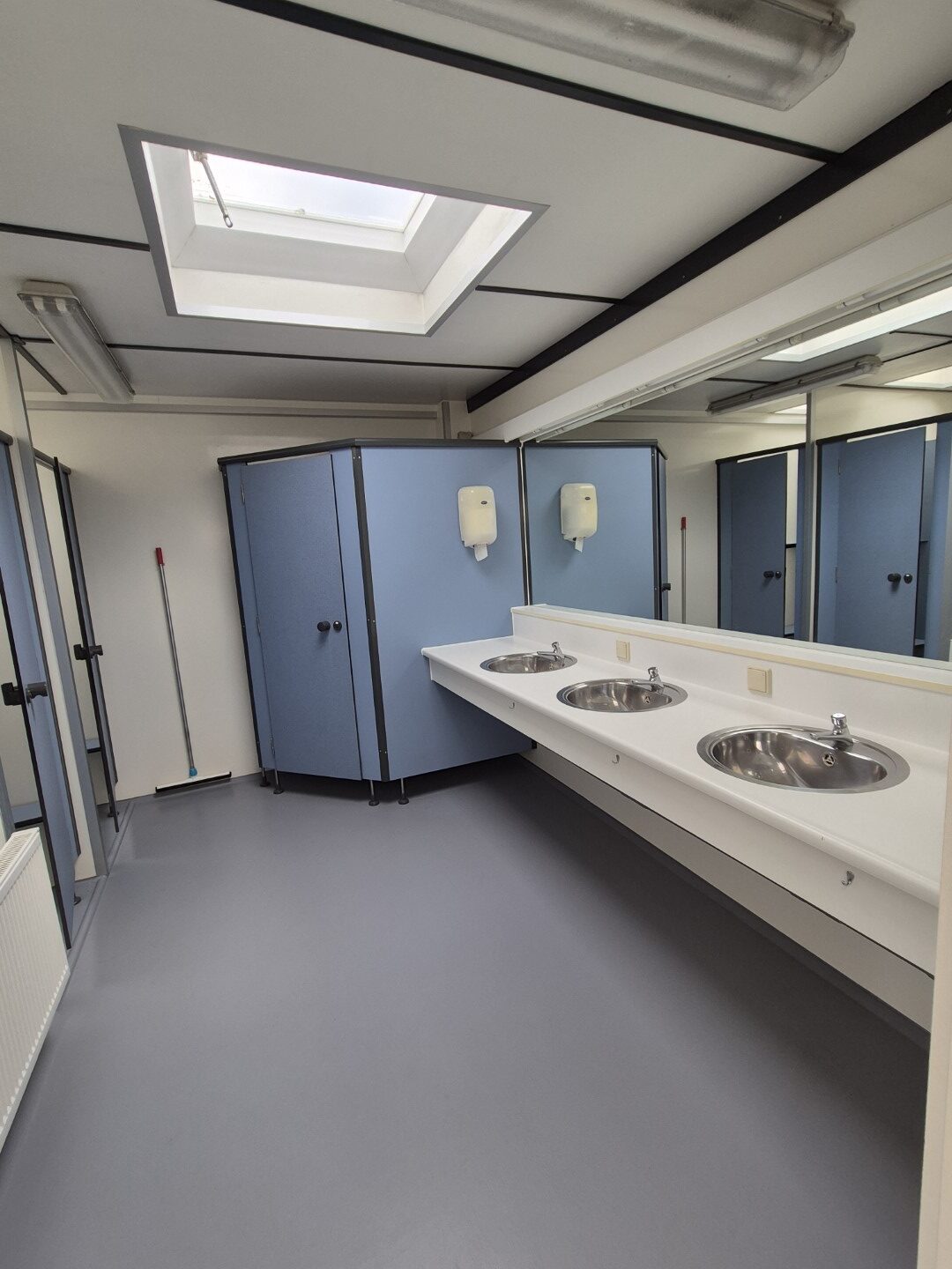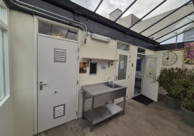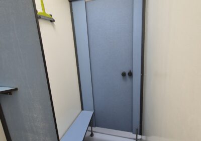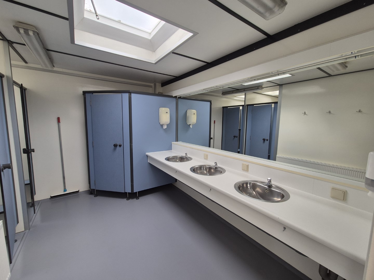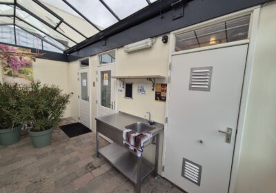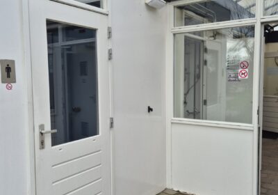 Deze sanitair unit is voorzien van centrale afzuiging en verwarming ( cv ketel vervangen eind 2023) en aan beide zijde een goedonderhouden boiler van pas enkele seizoenen oud. Verder voorzien van schrobputjes, daglicht koepels, elektronisch instelbaar douche systeem van Seijsener . De binnen plaats heeft een compacte maar luxe overkapping met 2 dakramen erin .