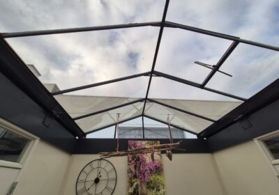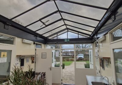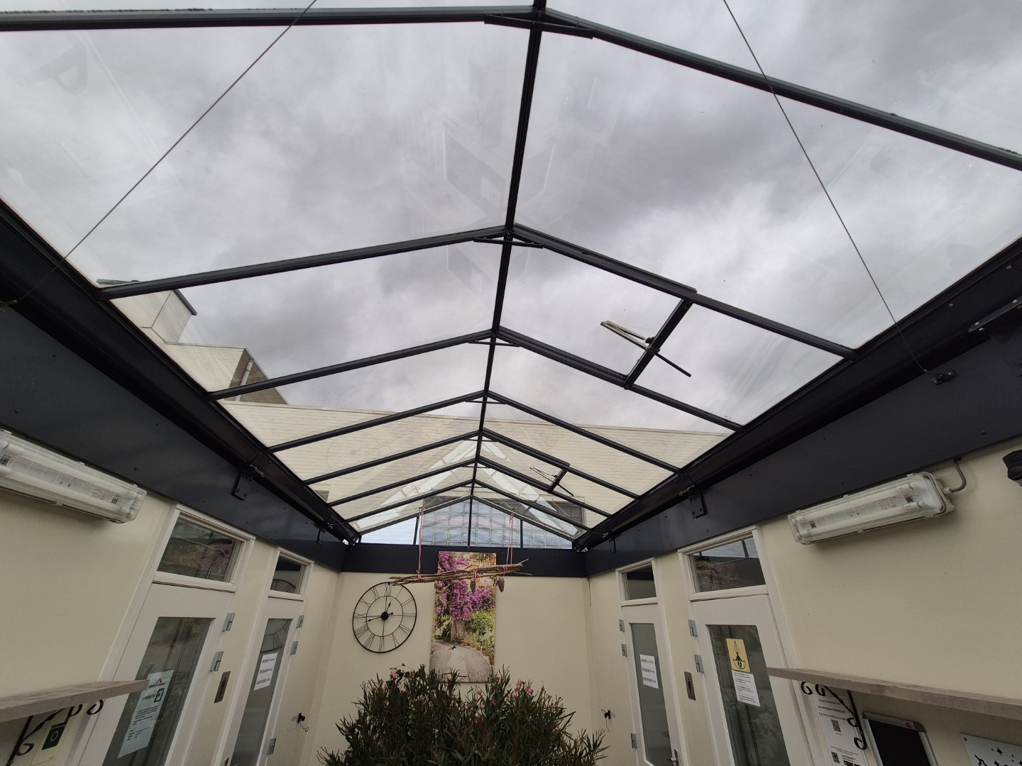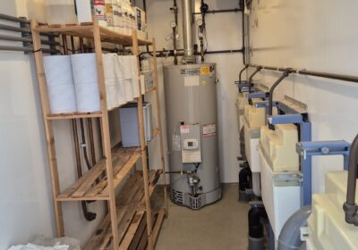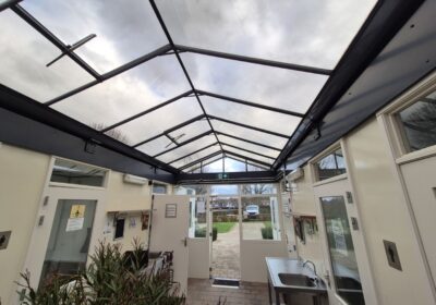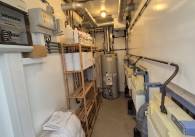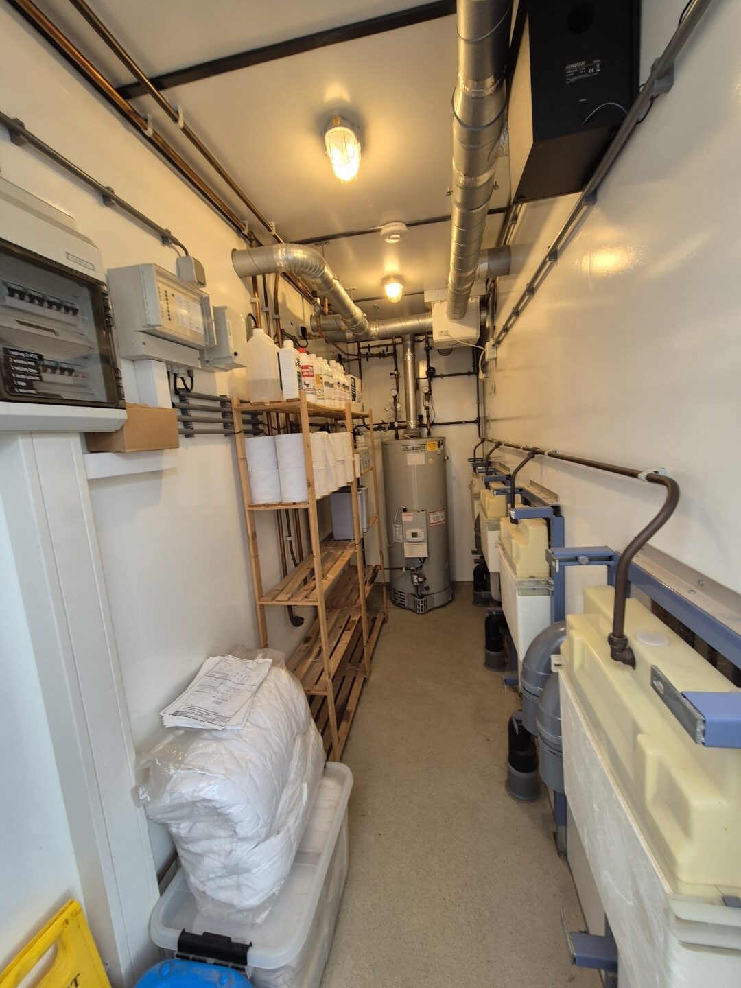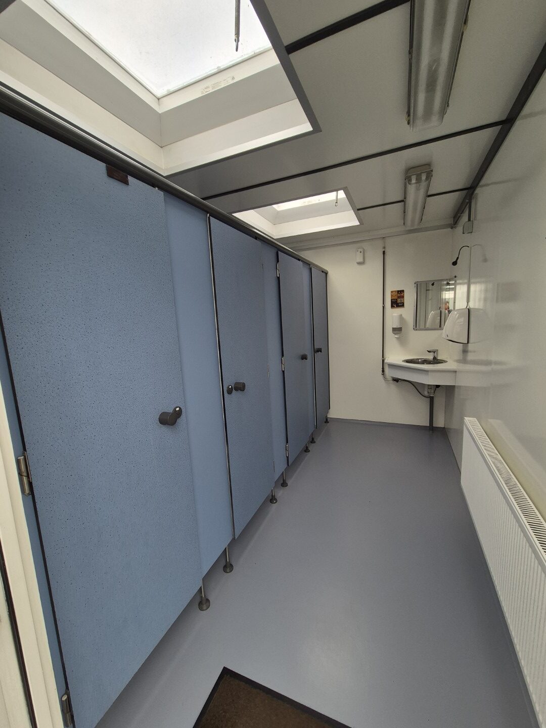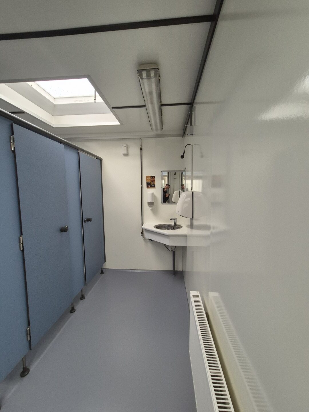 Deze sanitair unit is voorzien van centrale afzuiging en verwarming ( cv ketel vervangen eind 2023) en aan beide zijde een goedonderhouden boiler van pas enkele seizoenen oud. Verder voorzien van schrobputjes, daglicht koepels, elektronisch instelbaar douche systeem van Seijsener . De binnen plaats heeft een compacte maar luxe overkapping met 2 dakramen erin .