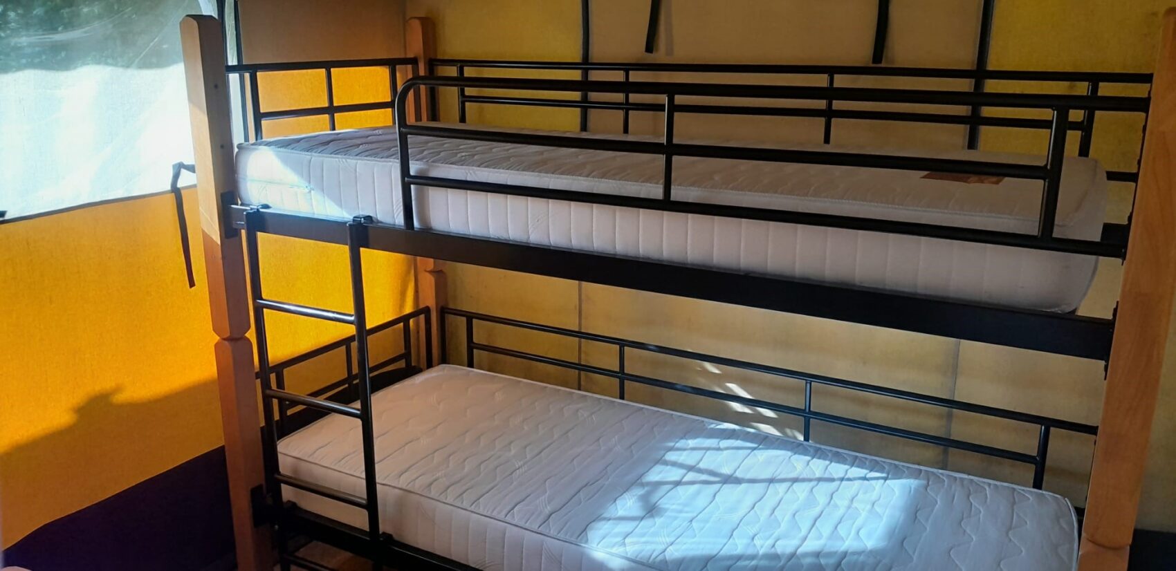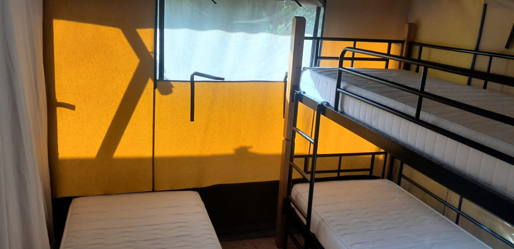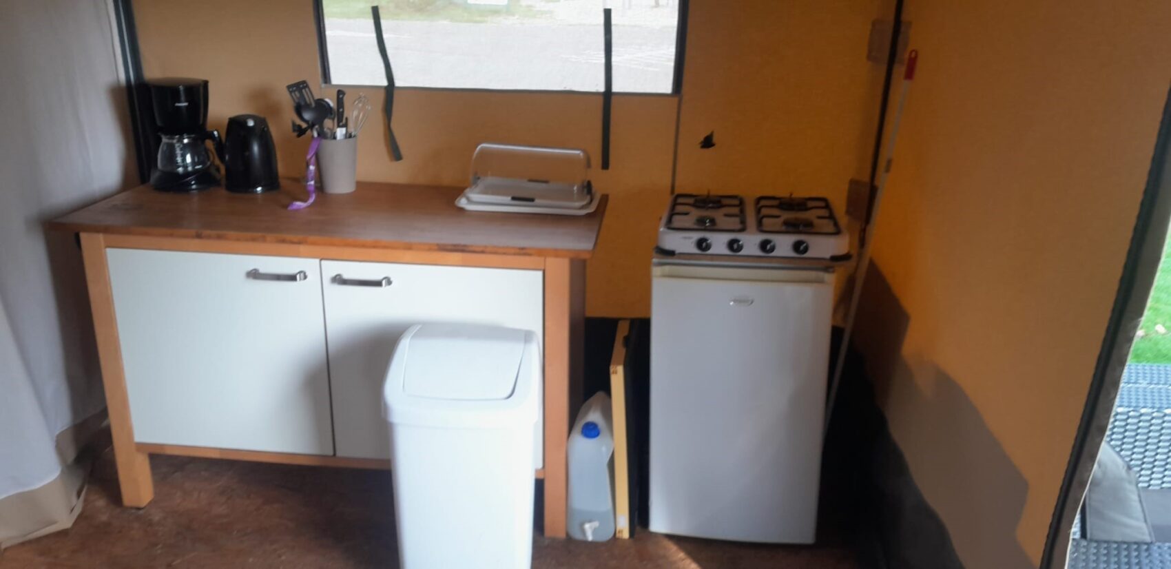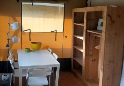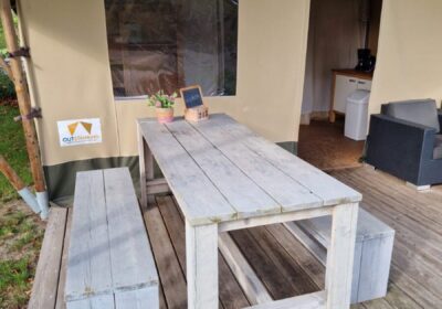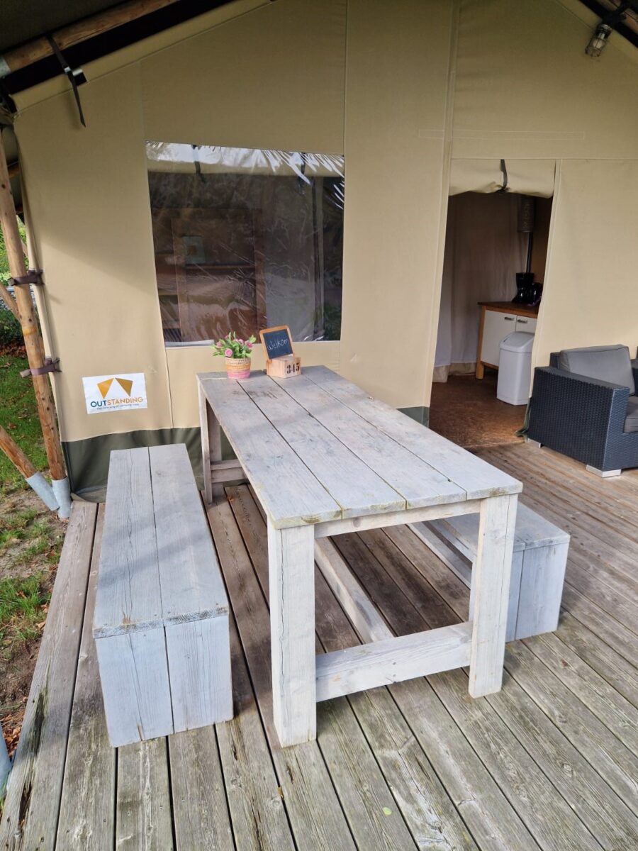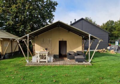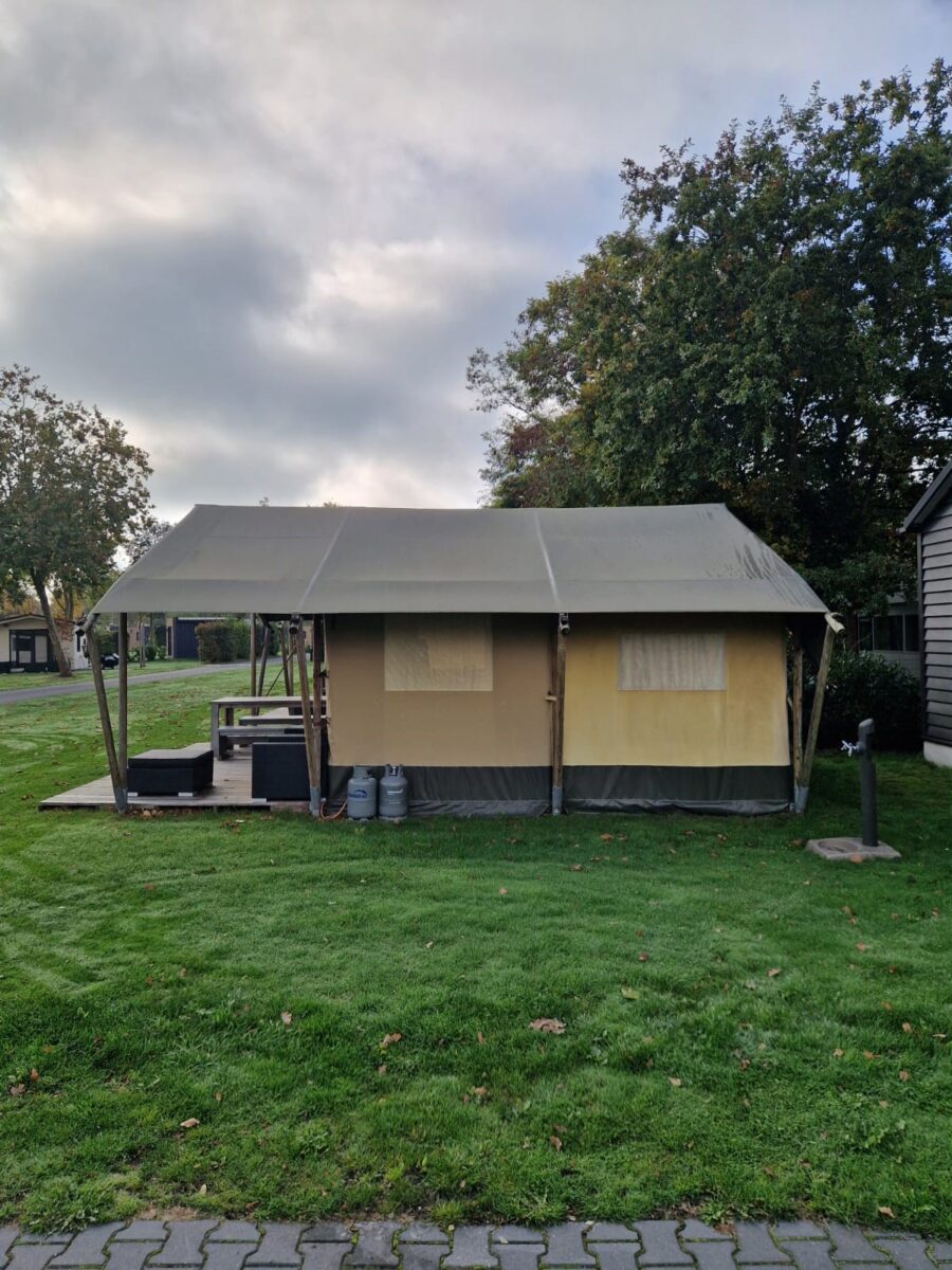 Een gebruikte maar in nette staat verkerende serie van 8 stuks Outstanding Glampingtenten. Het betreft hier een nette serie tenten met wat gebruikers sporen maar zeker nog in goede staat van de lijn zonder natte cel (badkamer) maar wel met een keukentje. Wordt geheel inricht zoals afgebeeld geleverd met alle toebehoren die aanwezig is voor 4 personen per tent. De tenten zijn 5 seizoen gebruikt in het hoofdseizoen en kunnen bij goed onderhoud nog zeker lang mee .