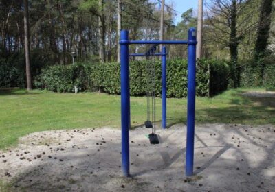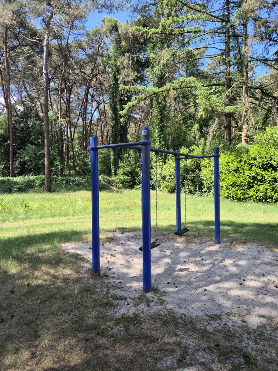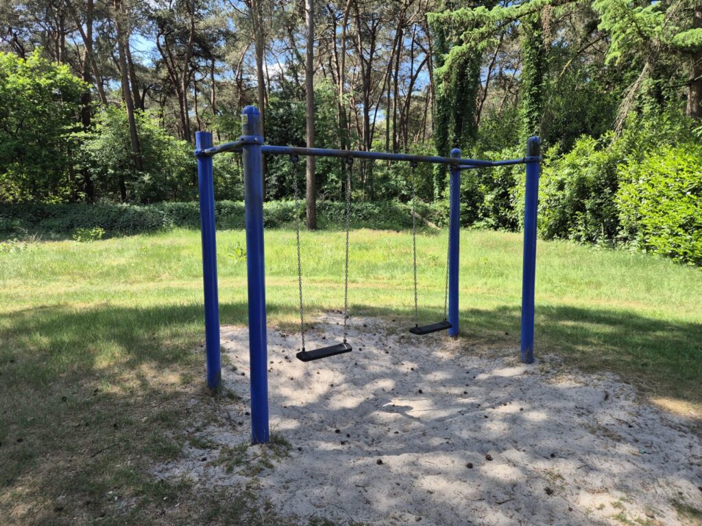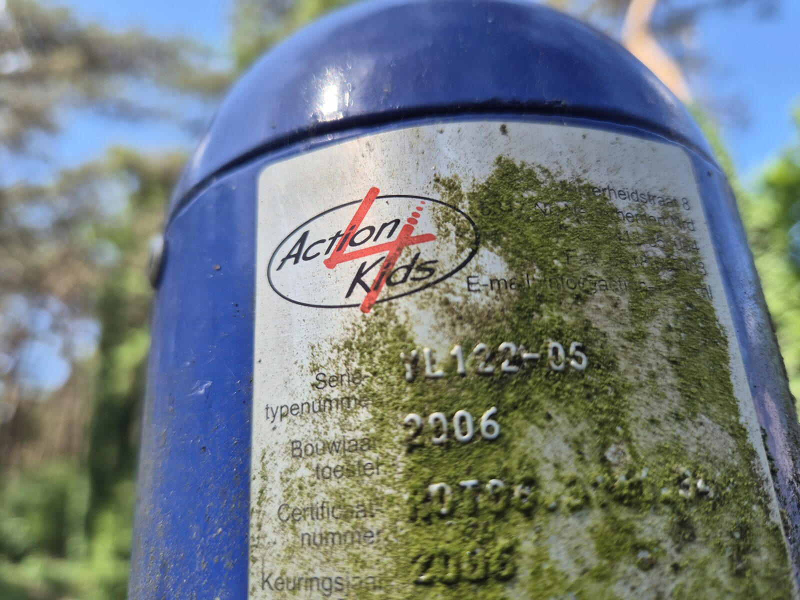 Een gebruikte schommel van het merk Action Kids met type goedkeuring plaatje voor spelen in openbare ruimtes. Schommel heeft een likje verf nodig maar is verder in ok conditie.