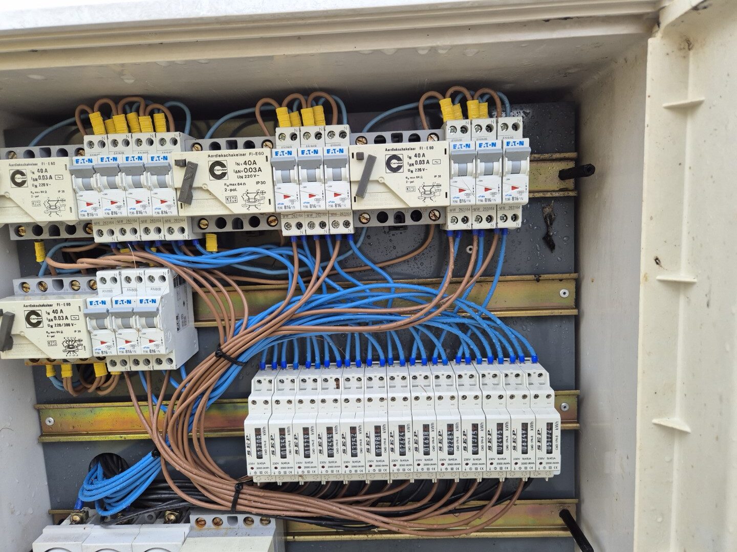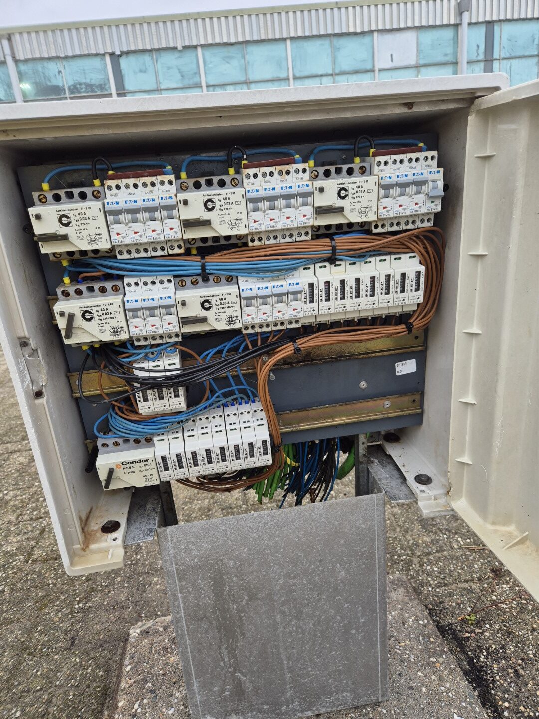 1 x 15 aansluitingen 16 Ampère met aardlekschakelaars en 15 x kWh meters en 3 fase hoofdschakelaar € 485,-