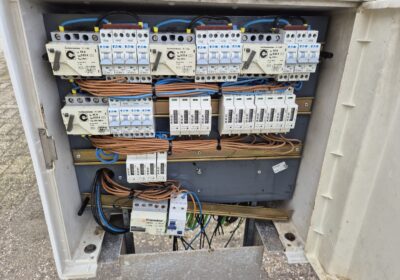 1 x 19 aansluitingen 16 ampère met aardlekschakelaars en 19 x kWh meters en 3fase hoofdschakelaar € 525,-