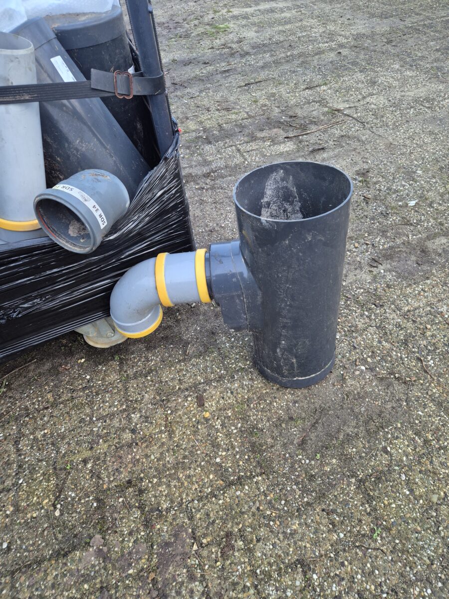 Een serie gebruikte kunststof stankafsluiters / zandhappers van Wildkamp . Worden gebruikt voor aansluiting op afvoer putten op het riool voor stankafsluiting en zand tegen verstoppingen. Prijs 15 per stuk .