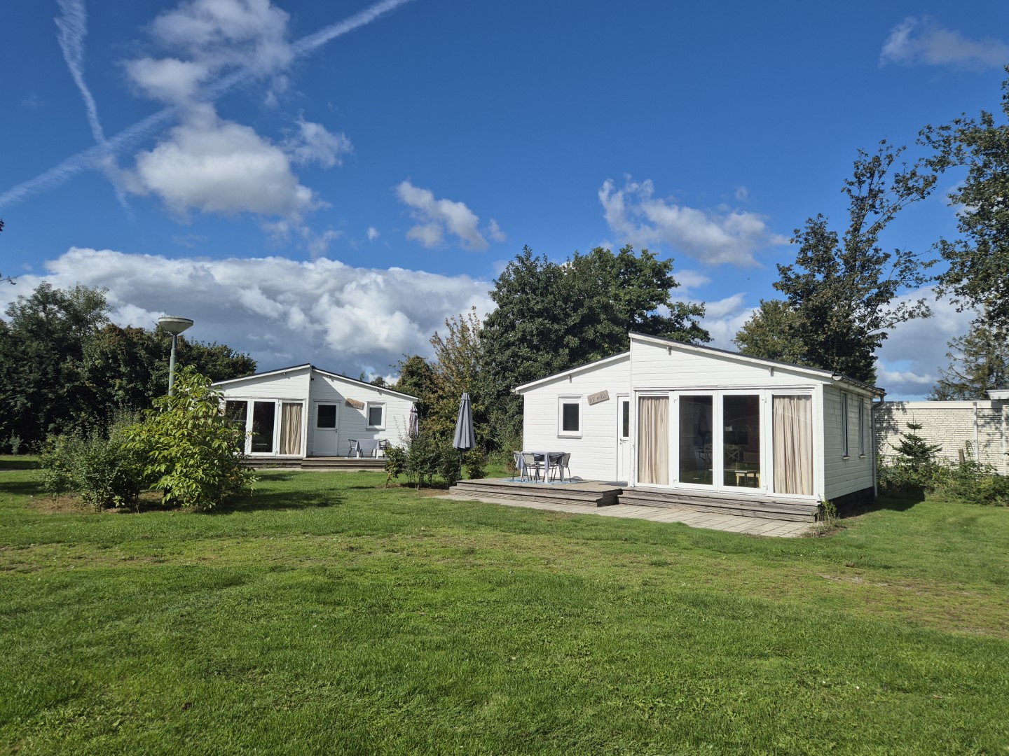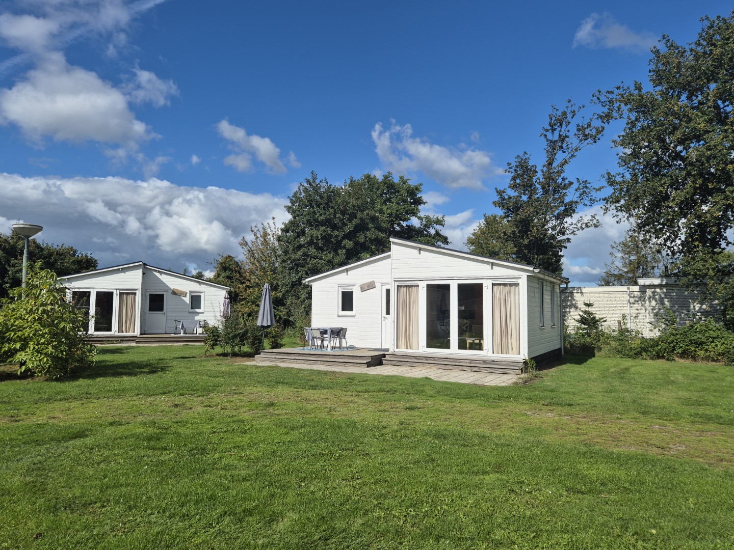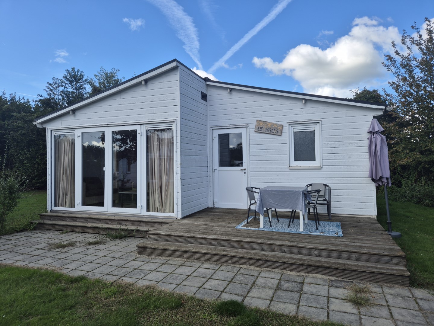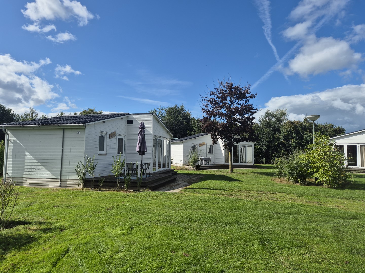 Serie van 4 gebruikte en zeer ruim opgezette Chalets voor 4 personen compleet met inrichting . Fraaie en geïsoleerde chalets (dubbel glas en wand isolatie) met houten bordes/veranda .