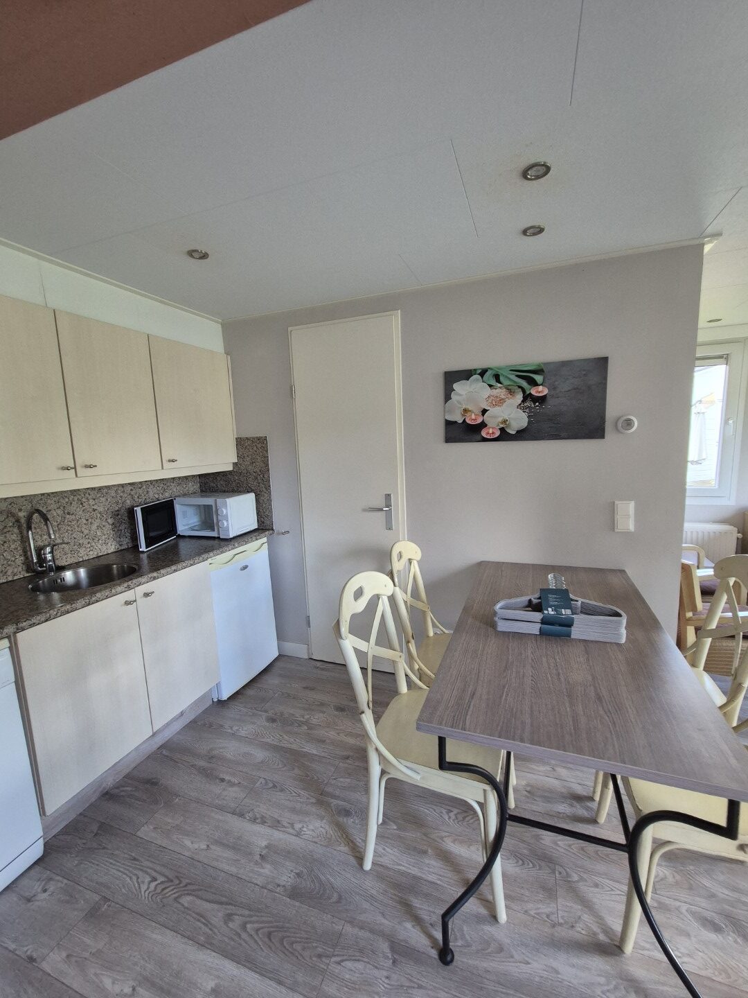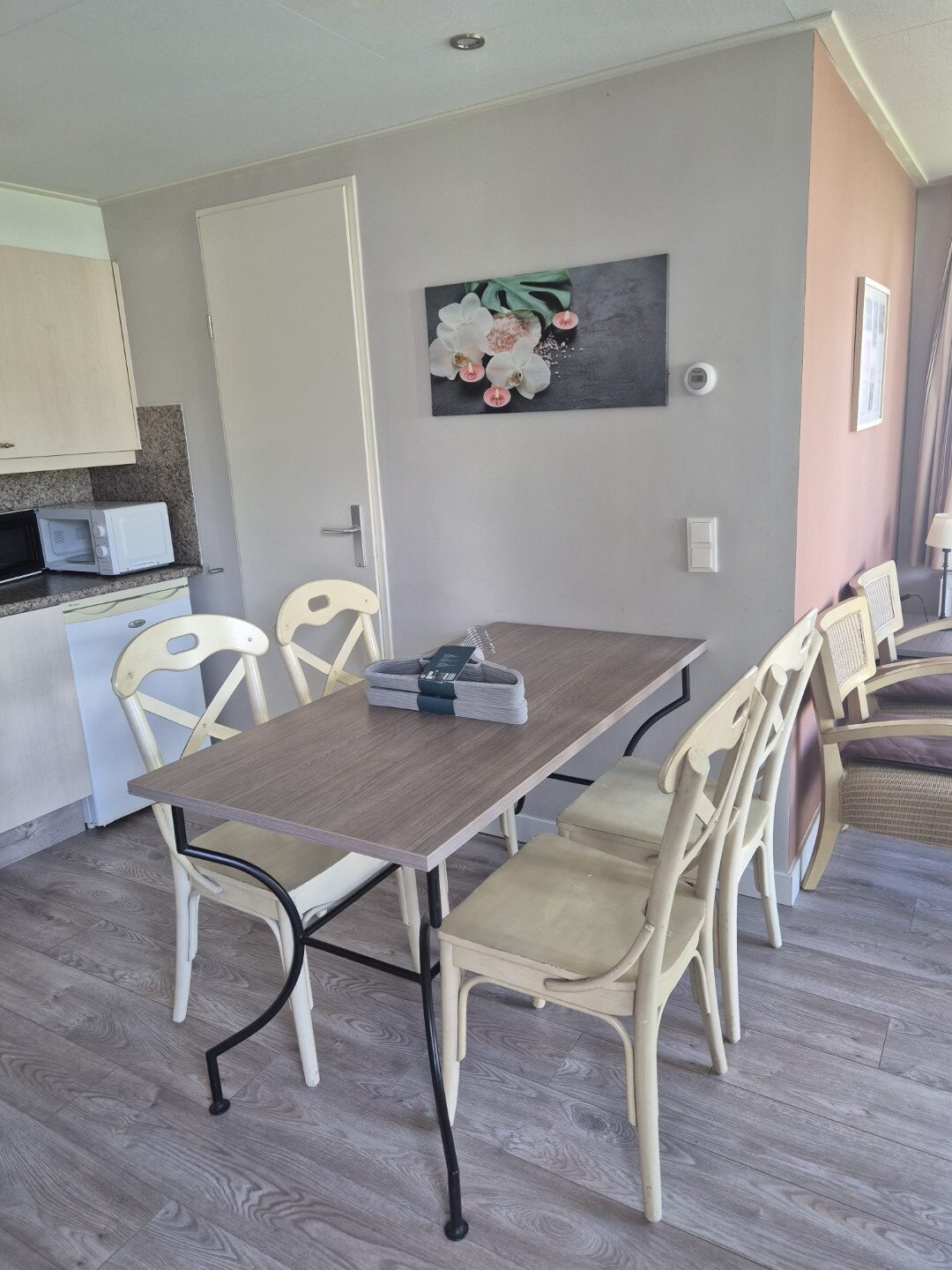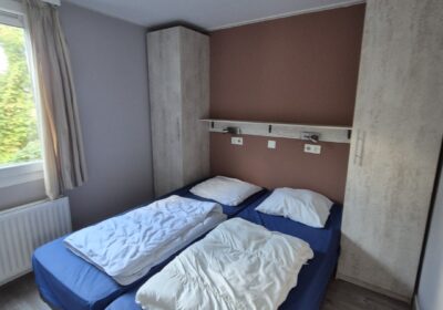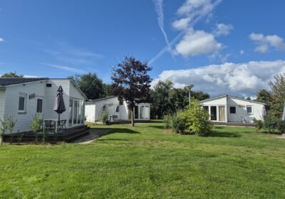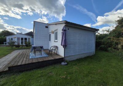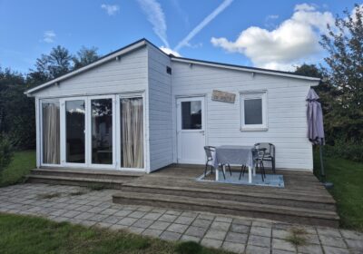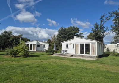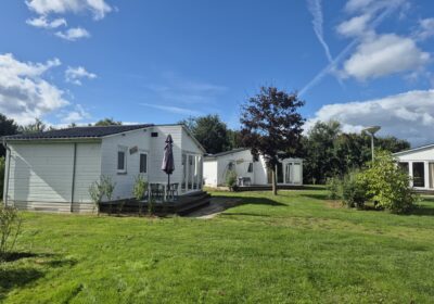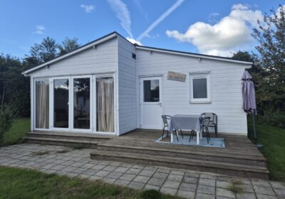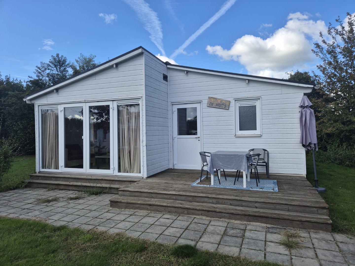 Serie van 4 gebruikte en zeer ruim opgezette Chalets voor 4 personen compleet met inrichting . Fraaie en geïsoleerde chalets (dubbel glas en wand isolatie) met houten bordes/veranda .