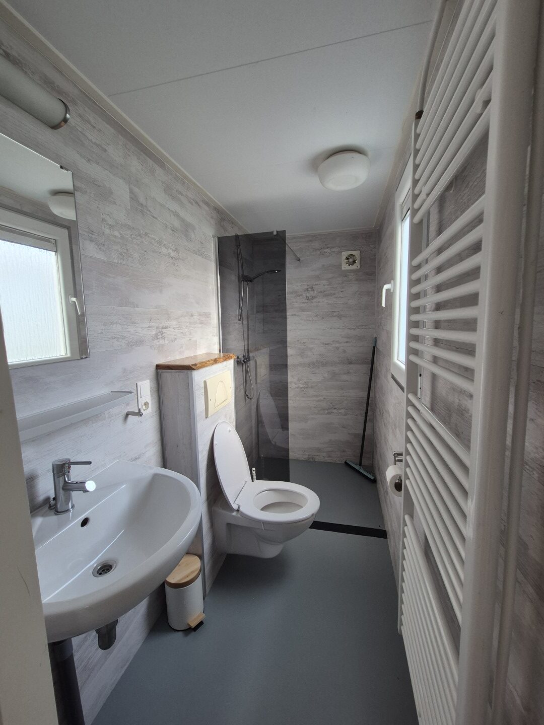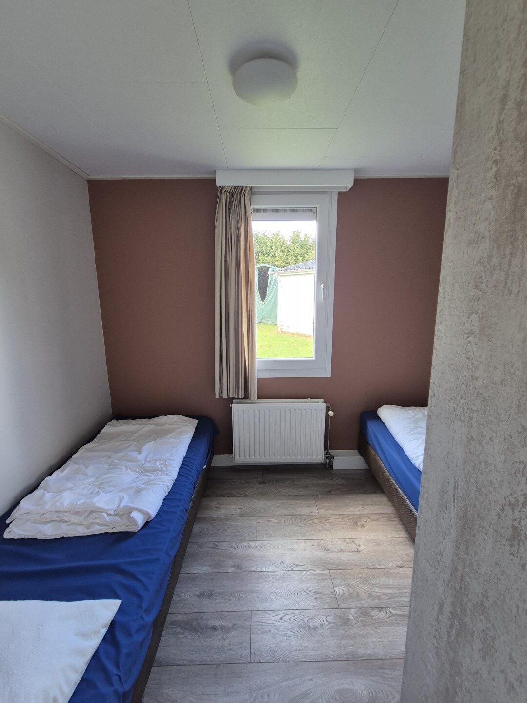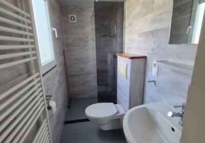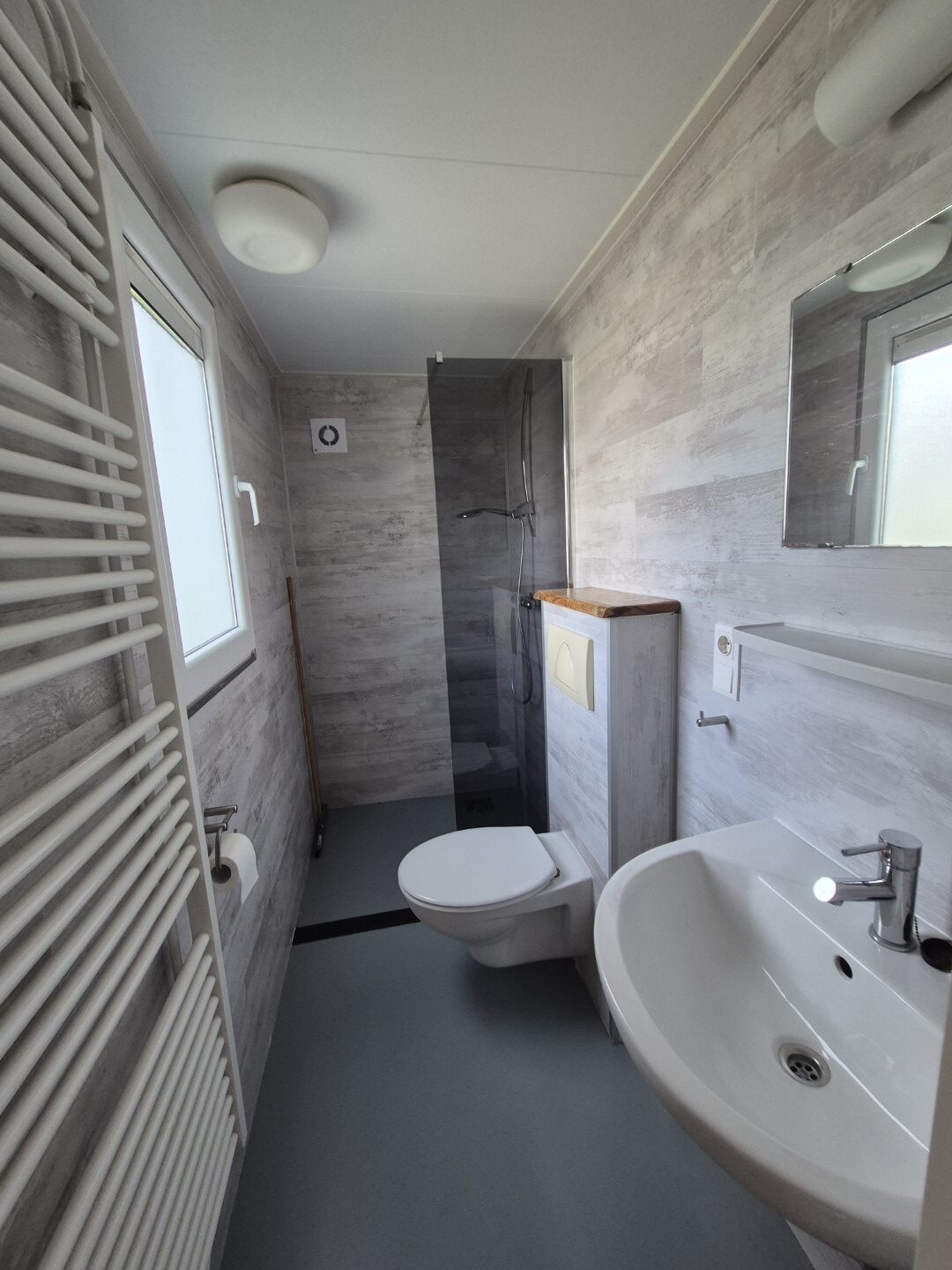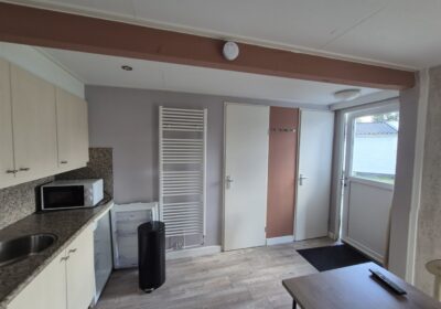Deze moderne chalets zijn van vele opties voorzien zoals: Openslaande deuren naar buiten met veel daglicht door grote ramen, centrale verwarming , dubbel glas , wand isolatie , inbouwspots voor sfeervolle verlichting , ruime en fraai ingerichte badkamer , mechanische ventilatie in de natte ruimte voor vocht en stank regulatie , compleet ingerichte keuken met propaan 4 pits gasfornuis en een elektrische boiler met ruime capaciteit voor het warme water en degelijk hang en sluitwerk. Deze chalets dienen zelf te worden gedemonteerd (demontage filmpje beschikbaar) dit is eenvoudigere dan het lijkt omdat de gehele chalet in grotere segmenten is opgebouwd (wanden uit een stuk) en zo ook weer uit en in elkaar gemonteerd gaan worden. Prijs is af Haaksbergen en de chalets kunnen op afspraak bezichtigd worden. Er zijn 3 dezelfde chalets en 1 x een gespiegelde Chalet beschikbaar Prijs per stuk € 6950,- en voor alle 4 € 24950,-