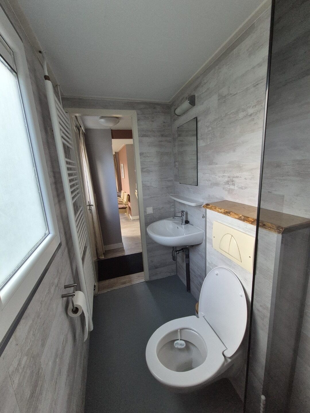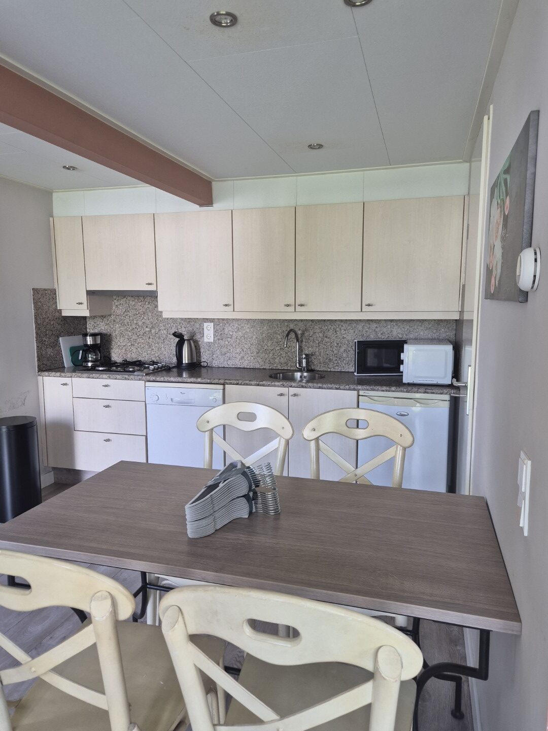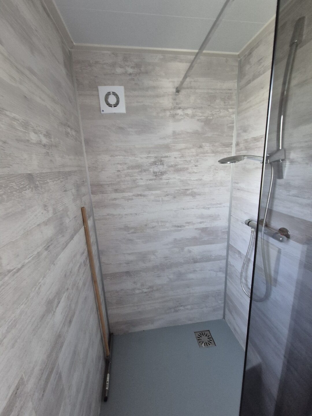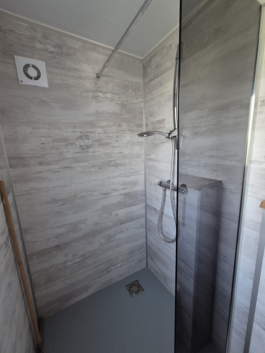 Deze moderne chalets zijn van vele opties voorzien zoals: Openslaande deuren naar buiten met veel daglicht door grote ramen, centrale verwarming , dubbel glas , wand isolatie , inbouwspots voor sfeervolle verlichting , ruime en fraai ingerichte badkamer , mechanische ventilatie in de natte ruimte voor vocht en stank regulatie , compleet ingerichte keuken met propaan 4 pits gasfornuis en een elektrische boiler met ruime capaciteit voor het warme water en degelijk hang en sluitwerk. Deze chalets dienen zelf te worden gedemonteerd (demontage filmpje beschikbaar) dit is eenvoudigere dan het lijkt omdat de gehele chalet in grotere segmenten is opgebouwd (wanden uit een stuk) en zo ook weer uit en in elkaar gemonteerd gaan worden. Prijs is af Haaksbergen en de chalets kunnen op afspraak bezichtigd worden. Er zijn 3 dezelfde chalets en 1 x een gespiegelde Chalet beschikbaar Prijs per stuk € 6950,- en voor alle 4 € 24950,-