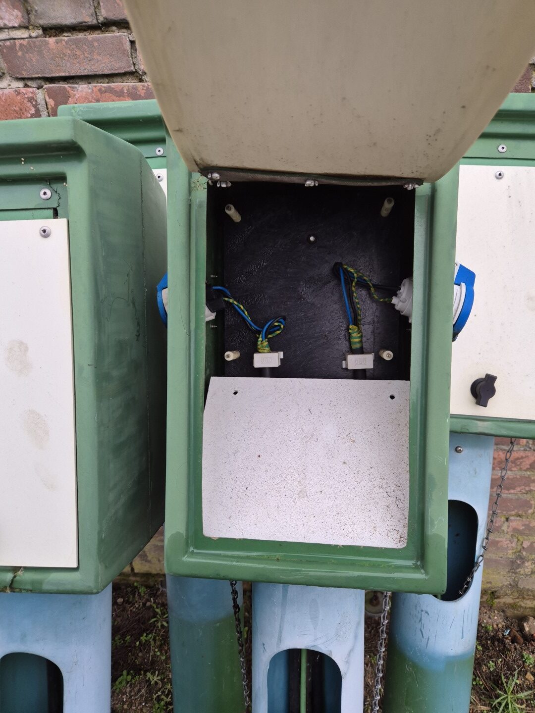 Serie gebruikte kunststof service paaltjes met aan de buitenkant 2 euro stekkers en aan de achterkant een water aansluiting. Prijs voor deze hele serie is € 300,- Aan de binnenkant is er ook ruimte mocht daar de elektra componenten worden geplaatst . Hiervoor hebben wij apart verkrijgbare waterdichte module kastjes eventueel leverbaar in 2 verschillende formaten van 6 modules en 12 modules voor het plaatsen van elektra componenten . Mocht dit nodig zijn dan is een betonnen afvoerput erbij ook leverbaar voor 35,- per stuk